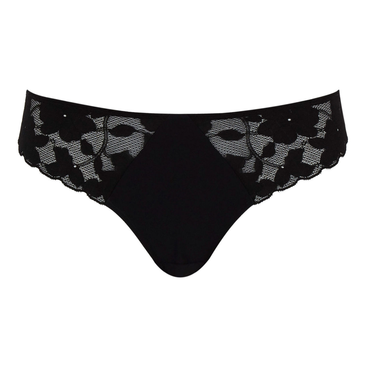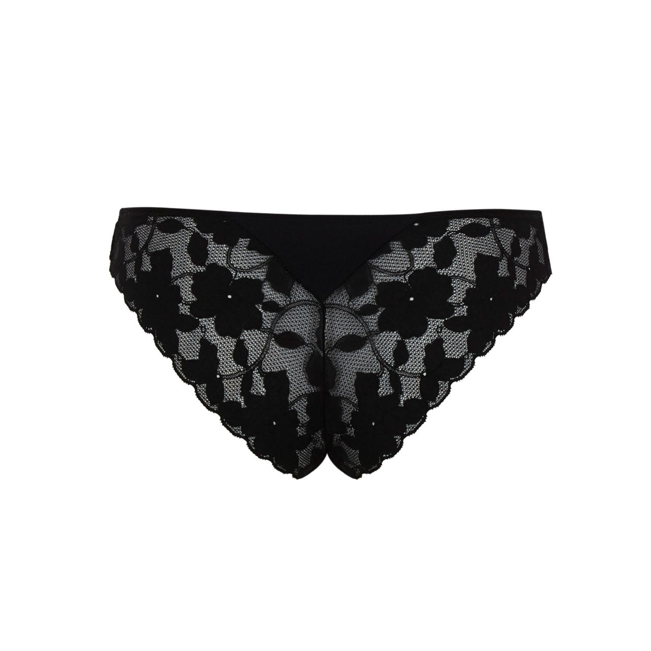 - Brazilian style brief, floral lace detailing, sheer mesh side panels, cotton gusset