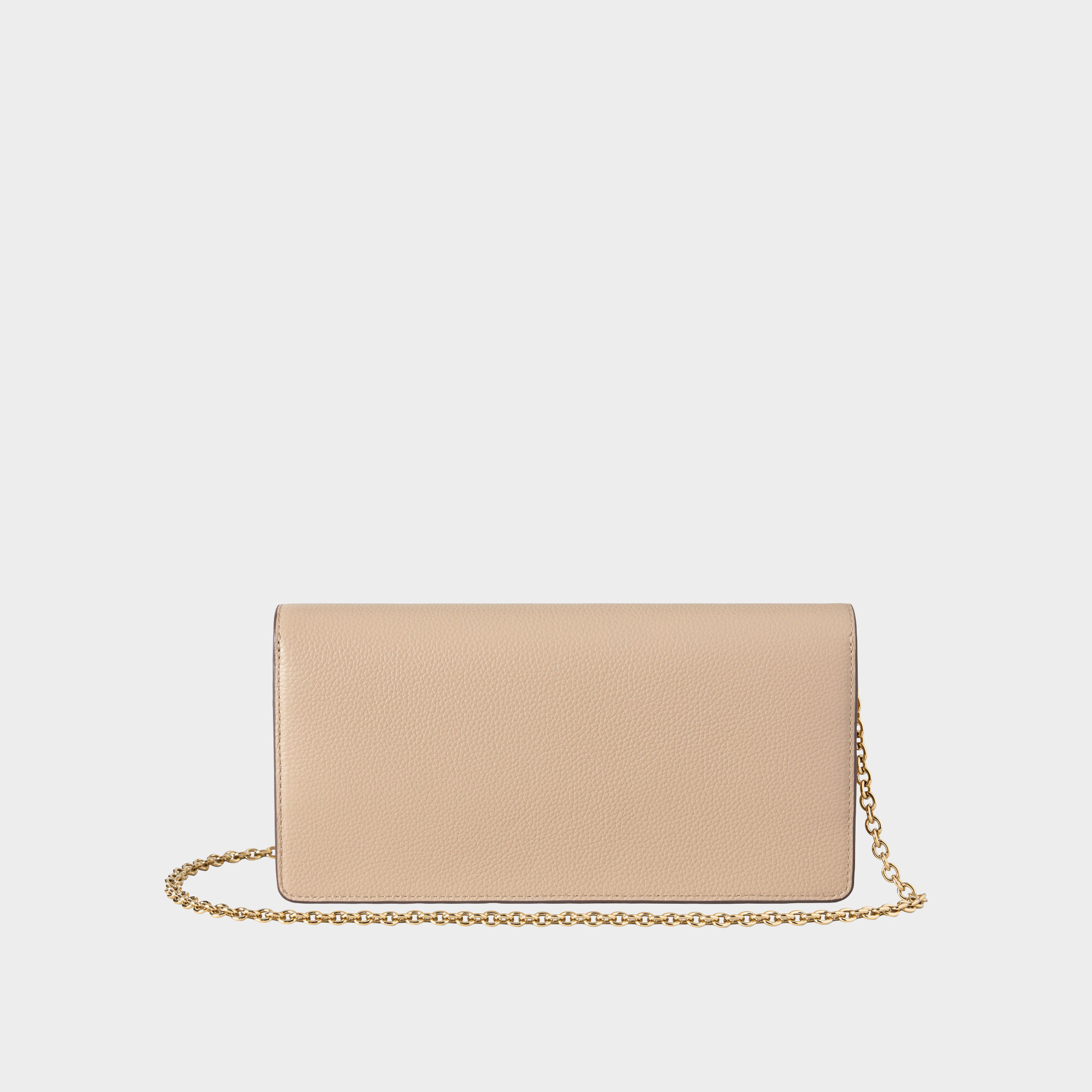 • Postman's Lock closure, soft gold-tone hardware finish, detachable chain strap for multi-wear functionality