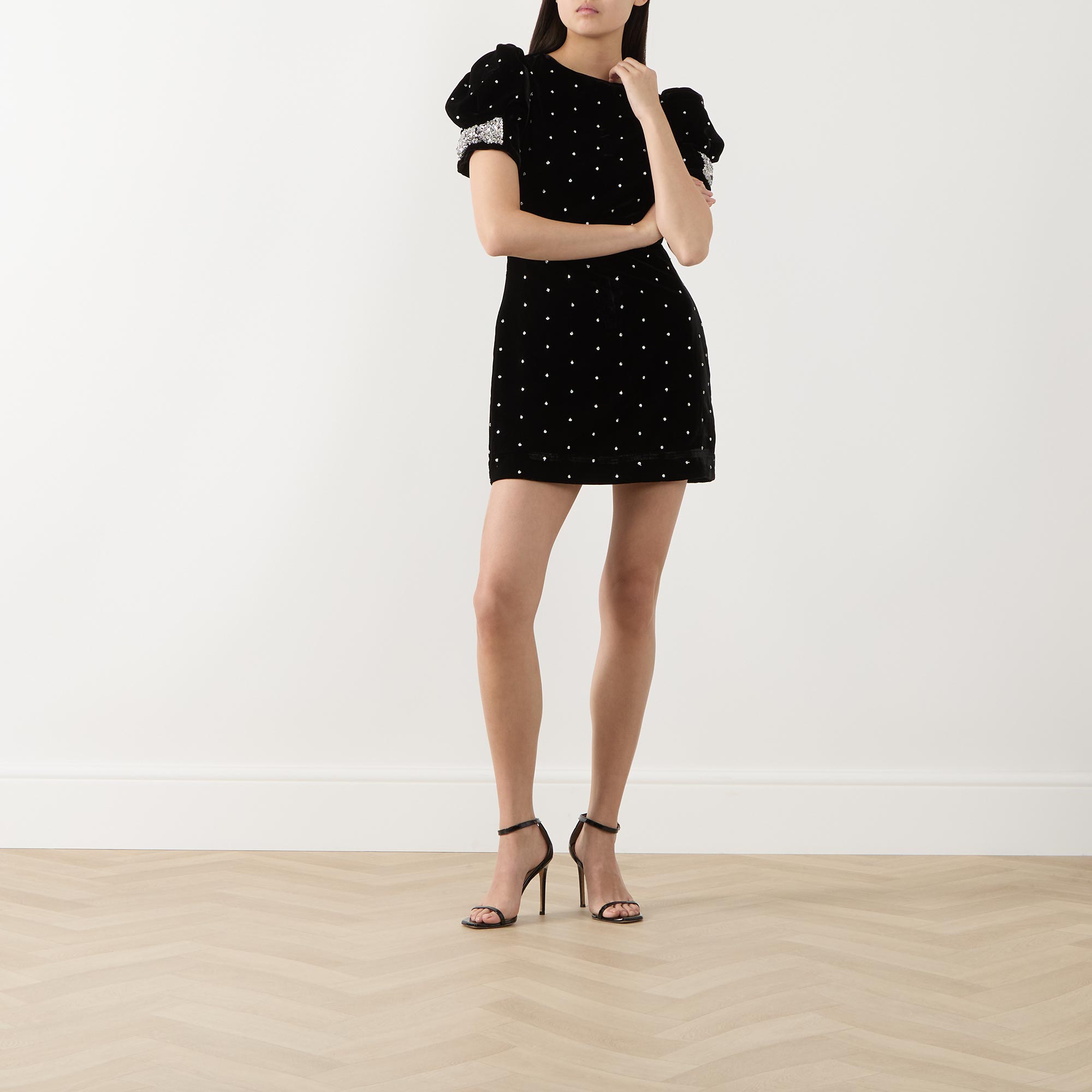 Quantity for Luna Dotted Velvet Mini Dress