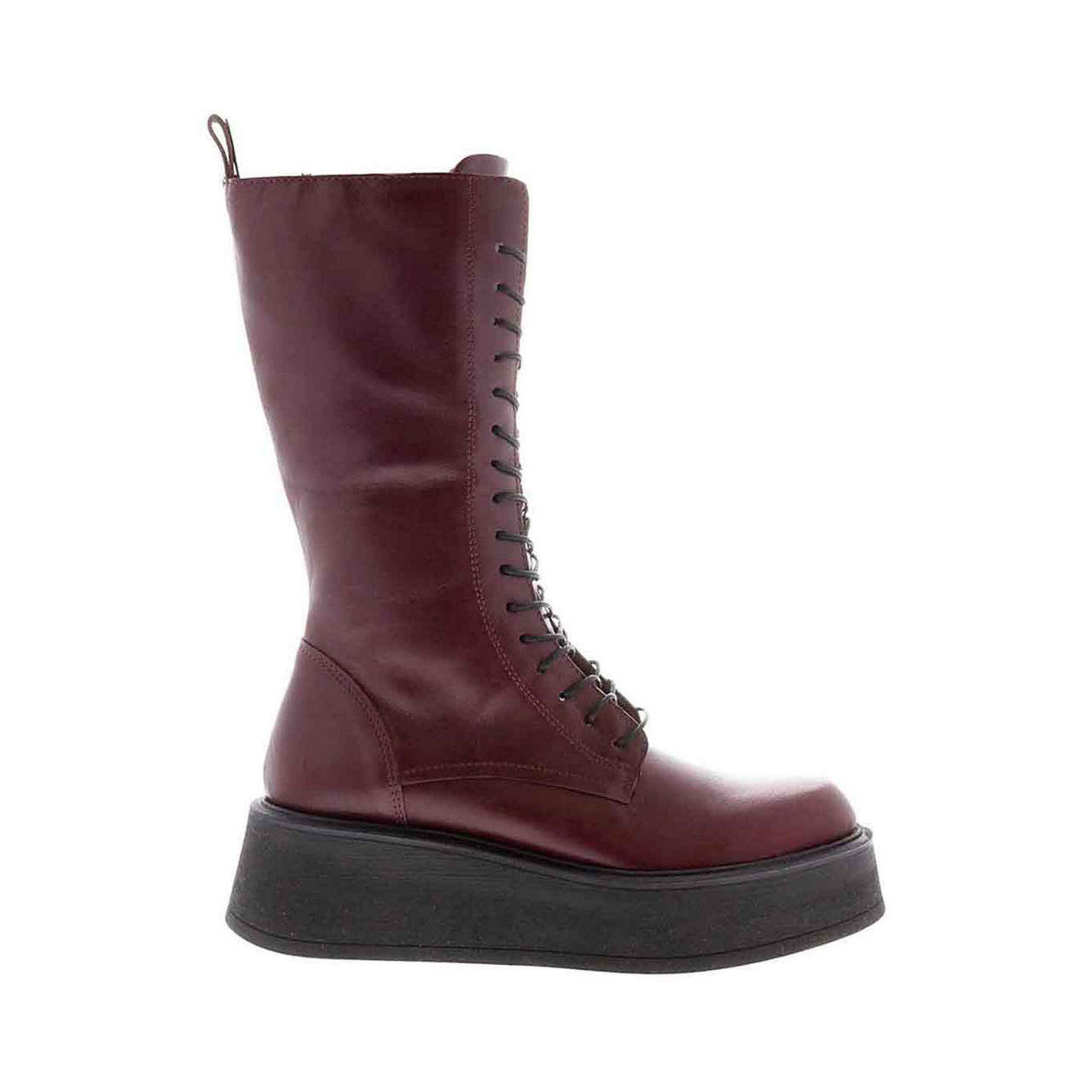 The Punk Burgundy Leather Lace-Up Boots by Carl Scarpa will add an edge to your shoe-drobe. They feature a leather calf-height upper and a top platform sole with a lace up front.