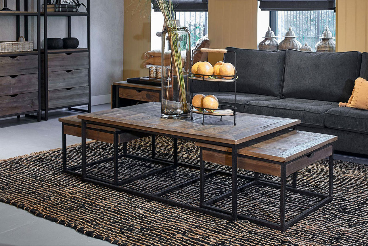 The combination of repurposed elm wood and iron creates a look that’s both industrial and welcoming. Stylish and unique in the Rivièra Maison collection. The Shelter Island series includes various Coffee Tables, available as individual models or sets. An End Table is also available in the same series.