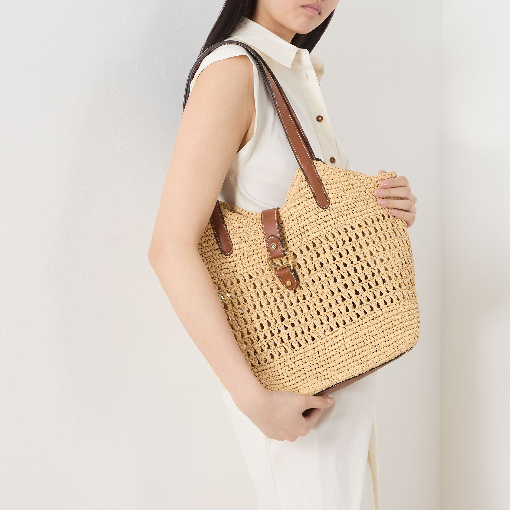 - Composition and Care: Shell: Paper straw. Trim and zip pouch: Leather.. Spot clean with a soft, dry cloth