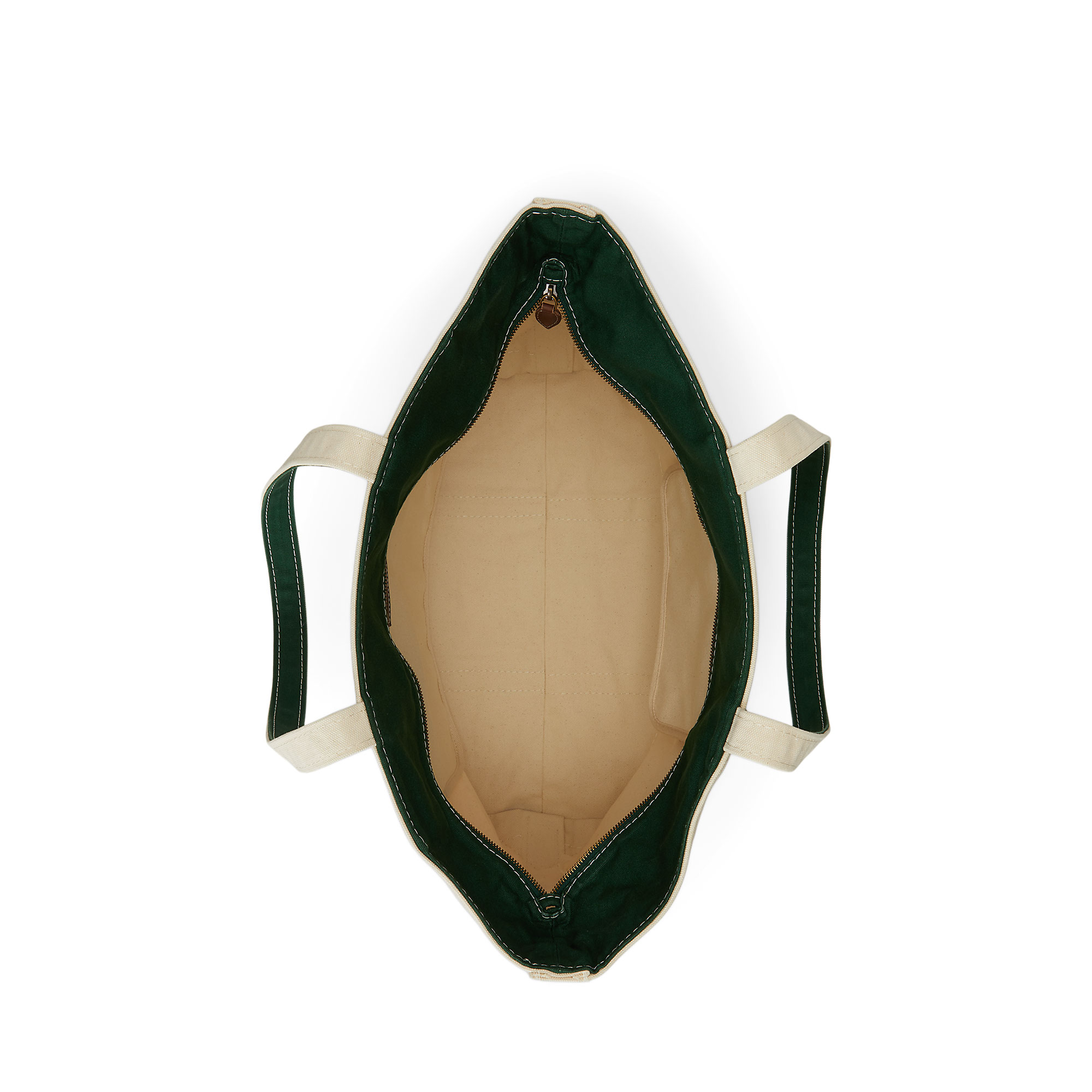 - Two top handles, top zip closure, leather zipper pulls, front slip pocket, signature embroidered Big Pony logo, reinforced base, durable cotton canvas fabric