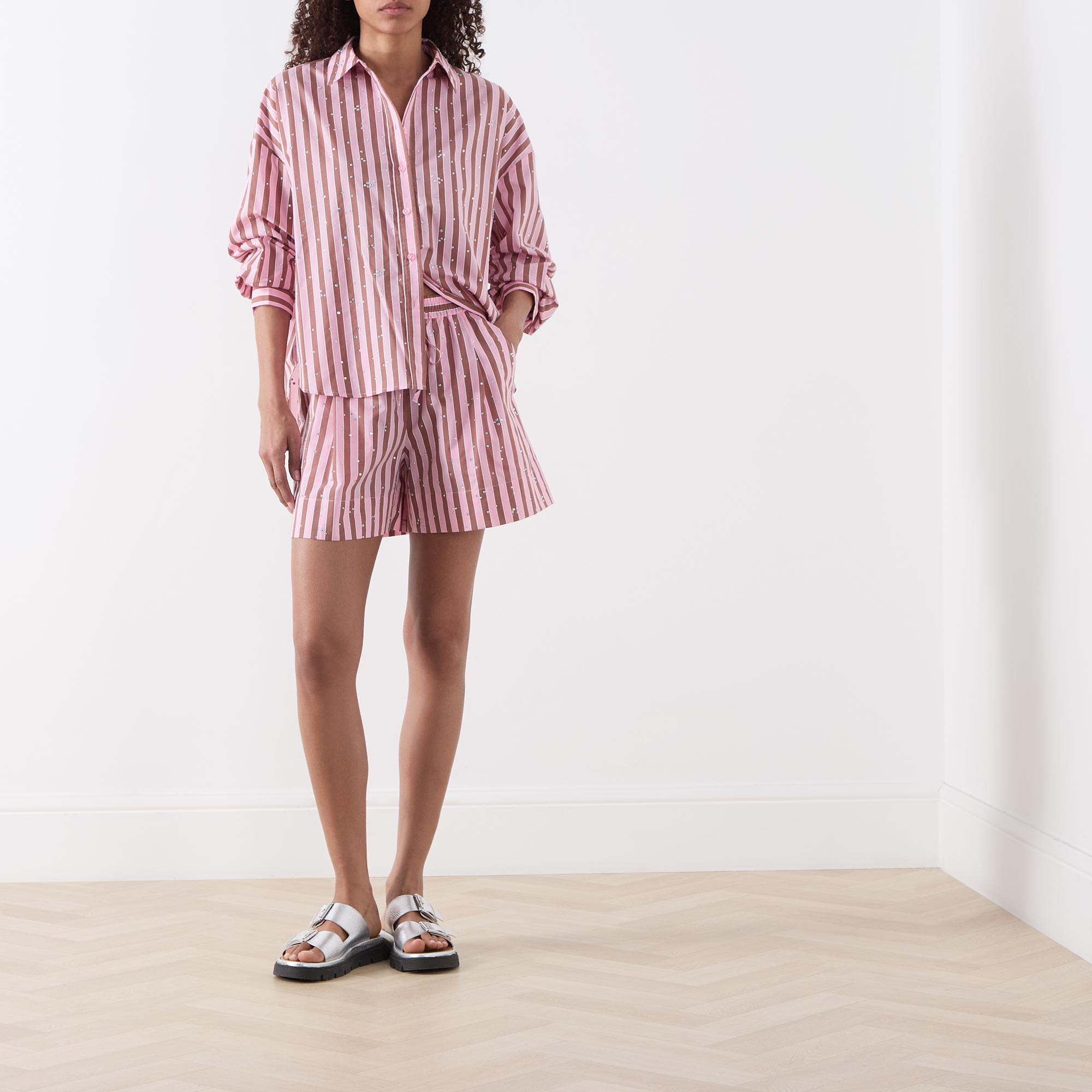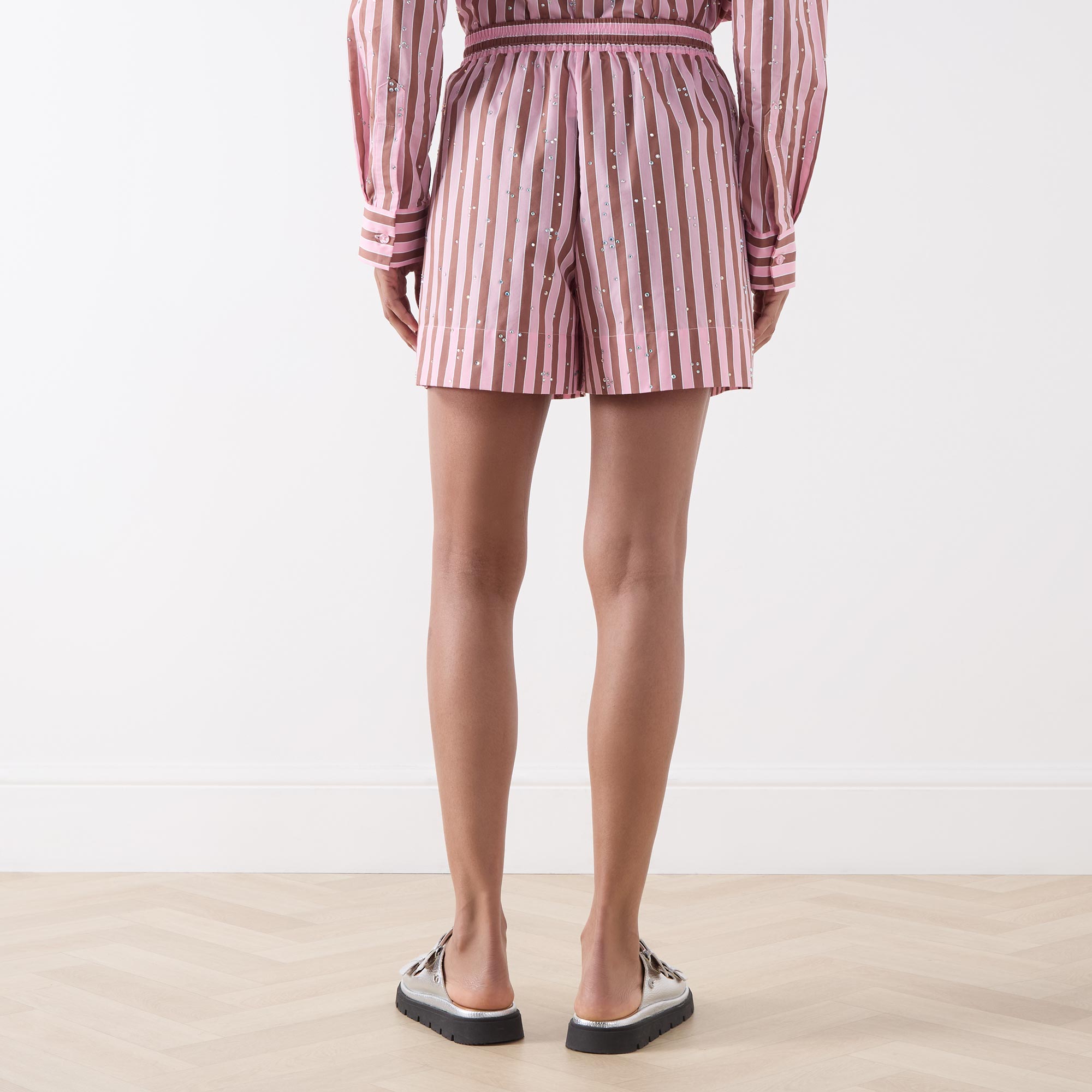 ESSENTIEL ANTWERP Jeeuw Rhinestone Striped Shorts