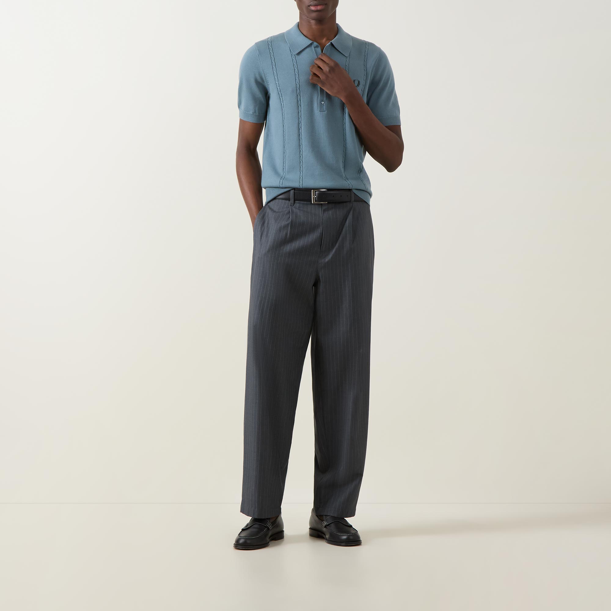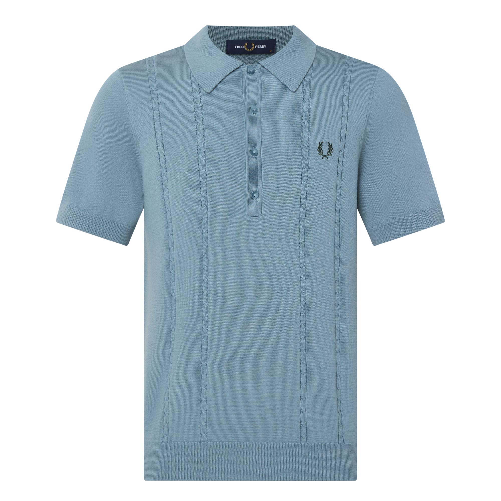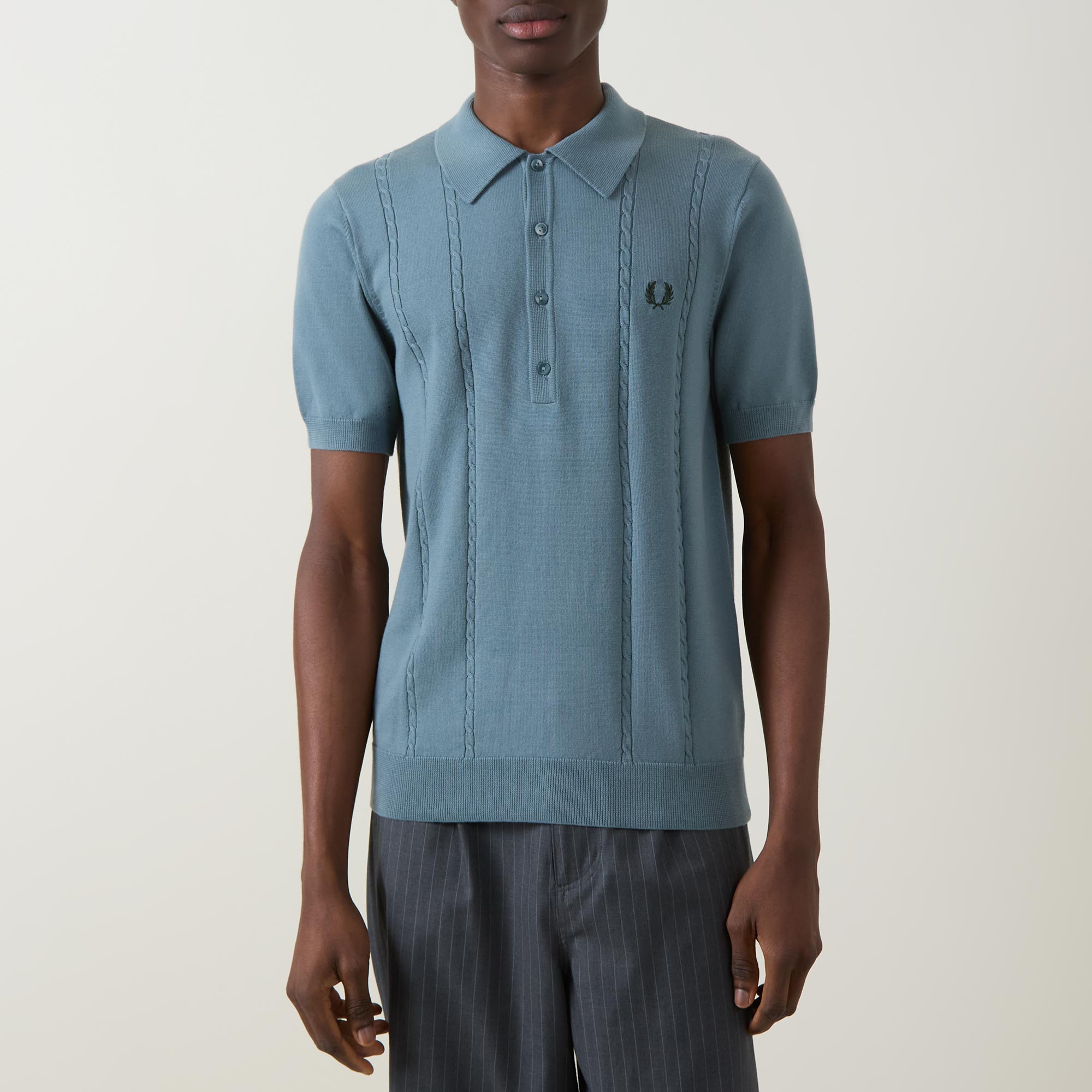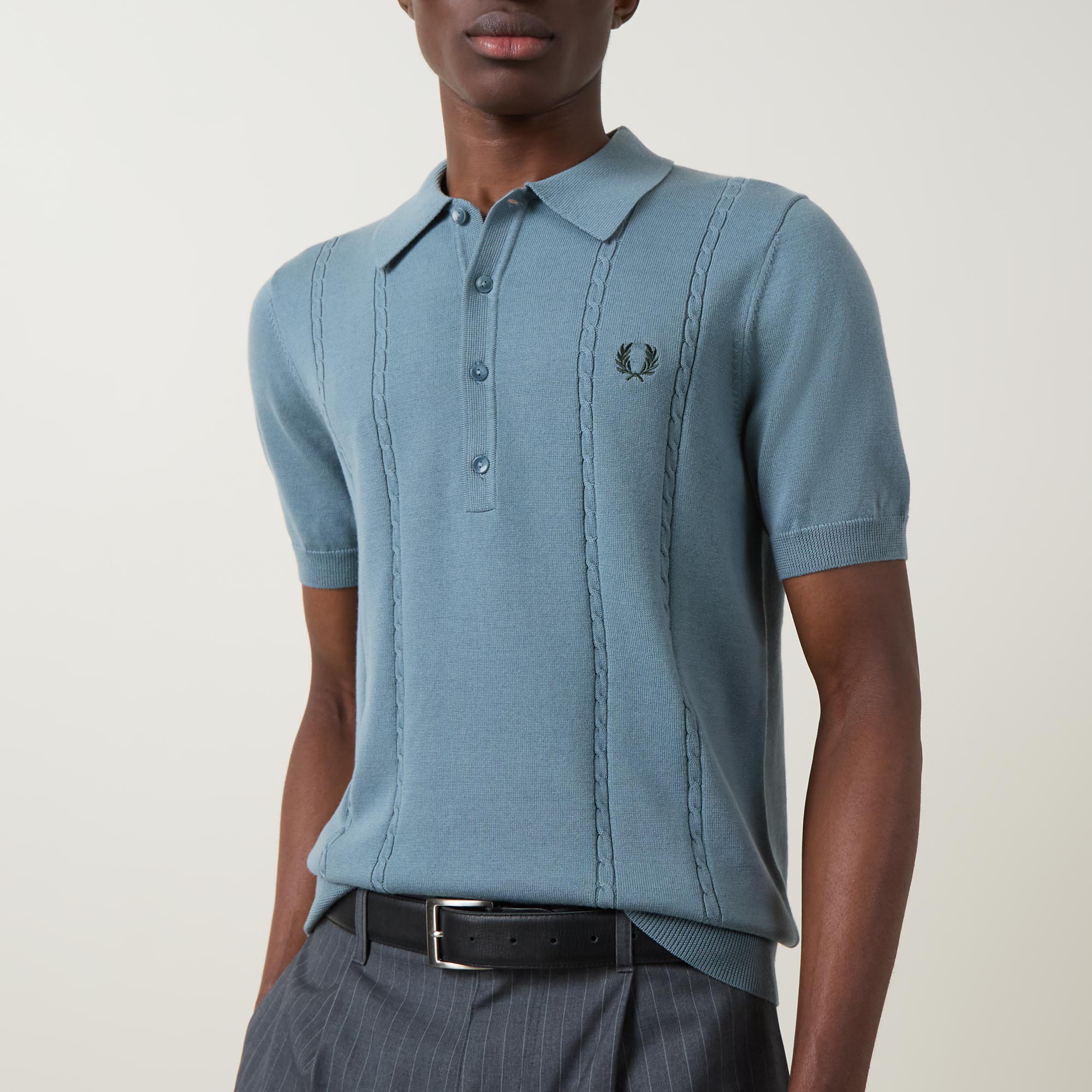 FRED PERRY The Sustainable Edit Laurel Logo Cable Knit Polo Shirt