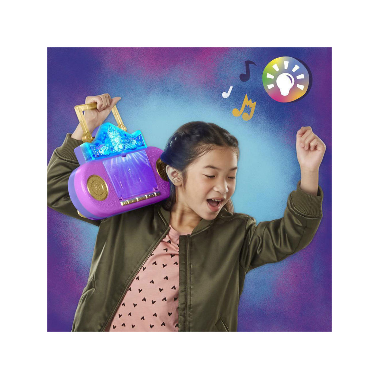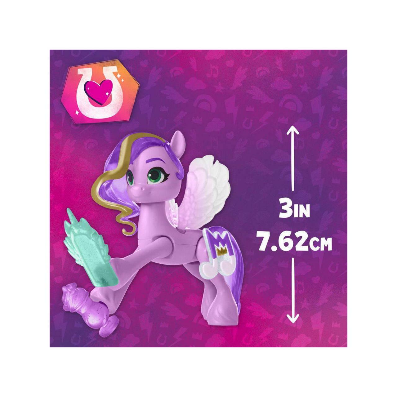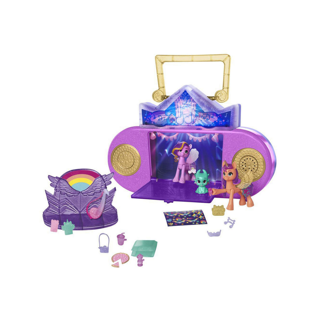 Make Your Mark at Mane Melody: Maretime Bay's first combo salon/karaoke stage from the My Little Pony: Make Your Mark show. Musical Mane Melody is 2-in-1 playset with pony-activated lights and sounds. On one side is a salon with pretend mane-dryer, closet for storing accessories, and pretend rainbow mirror. Open the other side to discover a pretend karaoke stage with lights and sounds. To activate music, press the "play" button or plug ponies into the stage. Each Hoof to Heart character will activate unique lights and music!