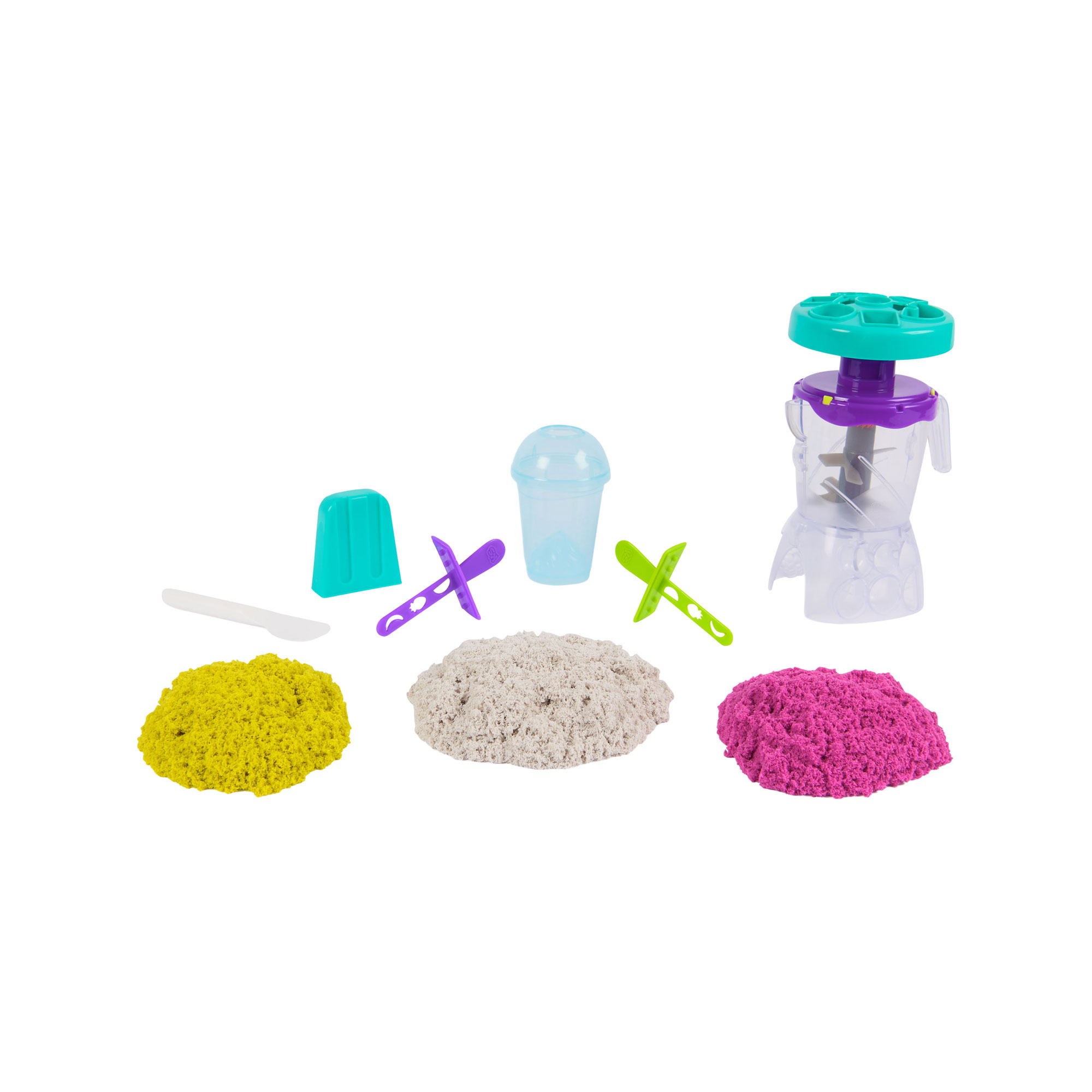 • Includes: 14oz kinetic sand, 1 mixer jar, 1 mixer lid, 1 smoothie cup, 1 smoothie cup lid, 1 straw/knife tool, 1 popsicle mould, 2 popsicle sticks