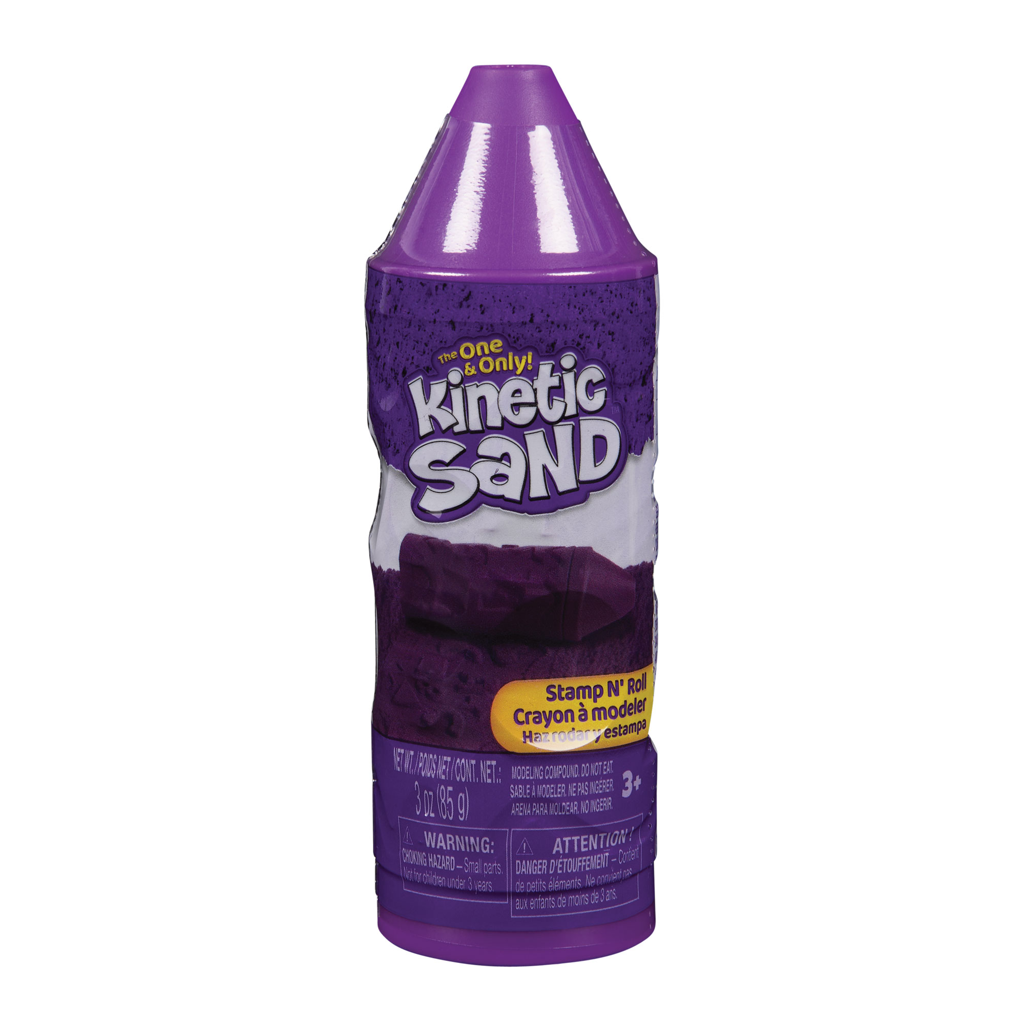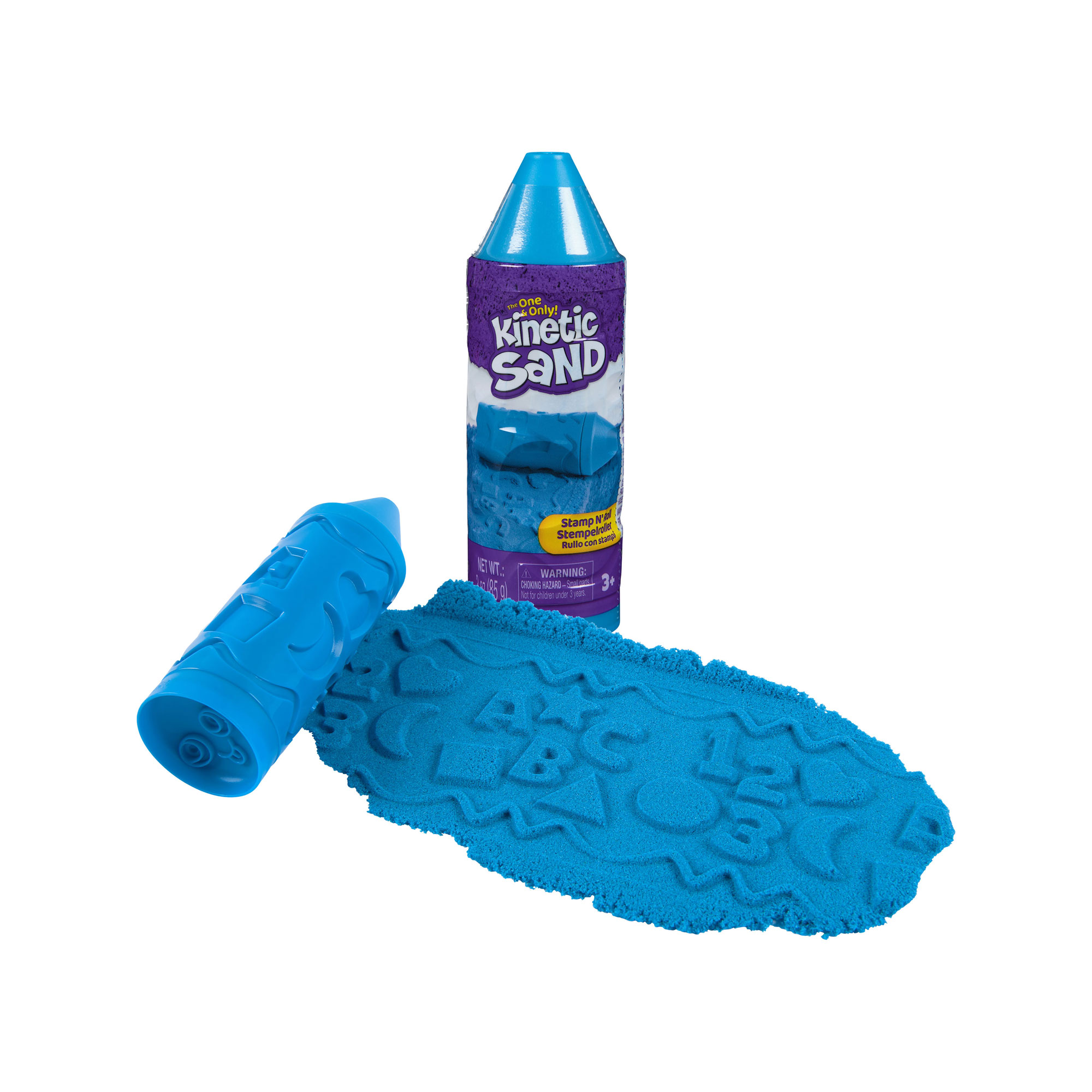 Feel the fun with Kinetic Sand Stamp N' Roll. This crayon-themed set includes 3oz of Kinetic Sand that can be stamped and rolled into letters, numbers, and shapes like a smiley face or star. Remove the top to reveal the sand inside and get straight to the fun. Roll, stamp, squish and play again and again. The crayon container stores the sand and its compact size makes it easy to take the creativity anywhere you go. Kinetic Sand aids in the development of fine motor skills and sensory skills, and is suitable for individual or group play, encouraging social interaction.
