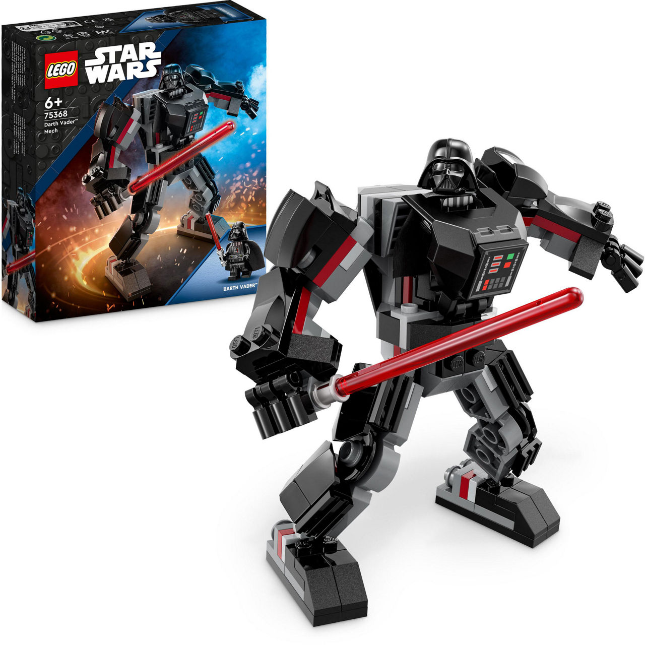 Introduce children to the dark side of the LEGO® Star Wars™ universe with this brick-built Darth Vader Mech for play and display. The posable mech has an opening cockpit for the Darth Vader LEGO minifigure, a clip for his lightsabre and gripping hands to hold a red lightsabre.