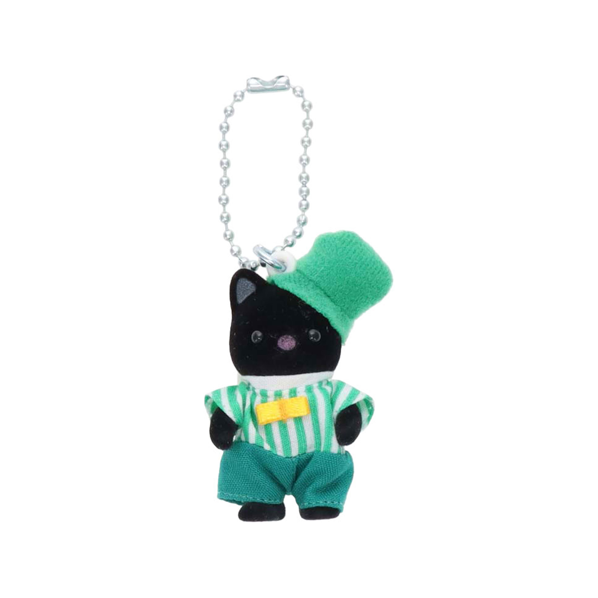 Everyone's favourite woodland families are back! Sylvanian Families are the charming, fuzzy characters with delightful homes and wholesome accessories. Let children's imaginations run wild with these adorable characters! This key chain features ‘Tuxedo Cat’ baby wearing an emerald hat and a striped shirt. Add to your bag and bring him with you on your adventures!