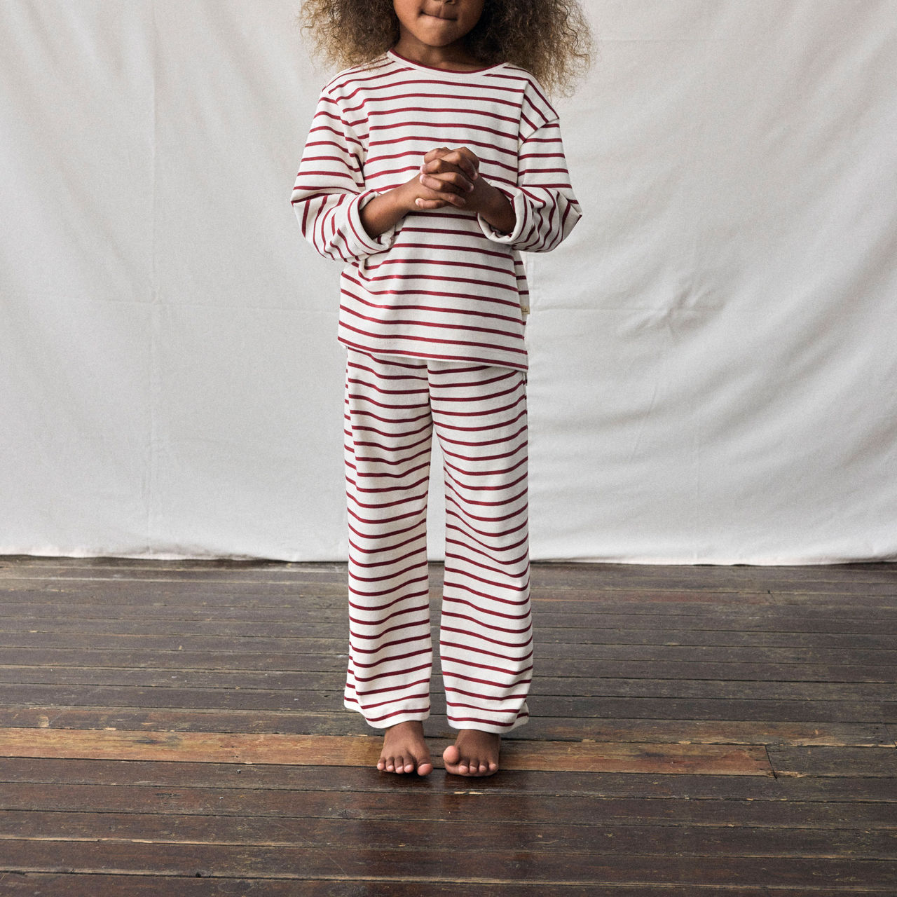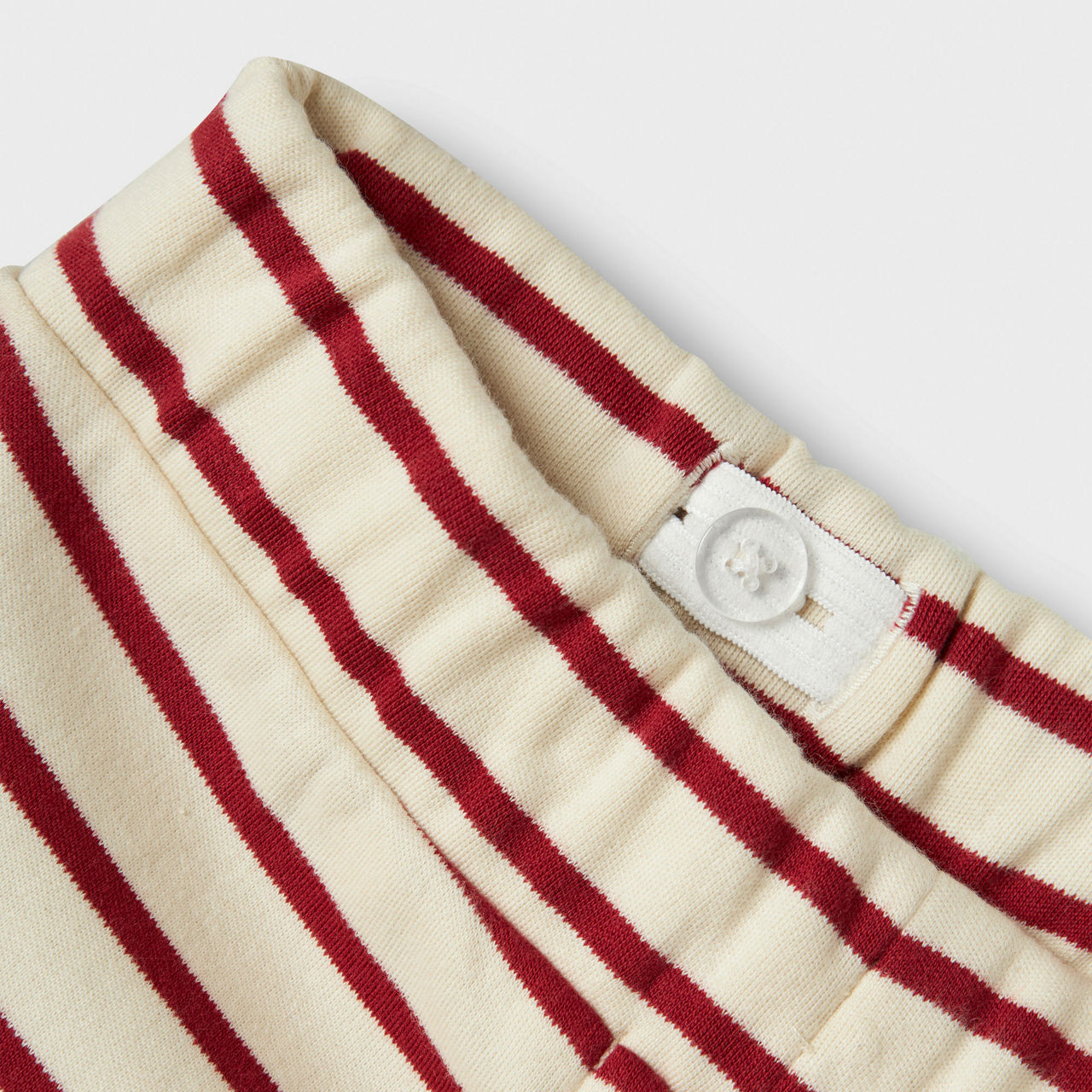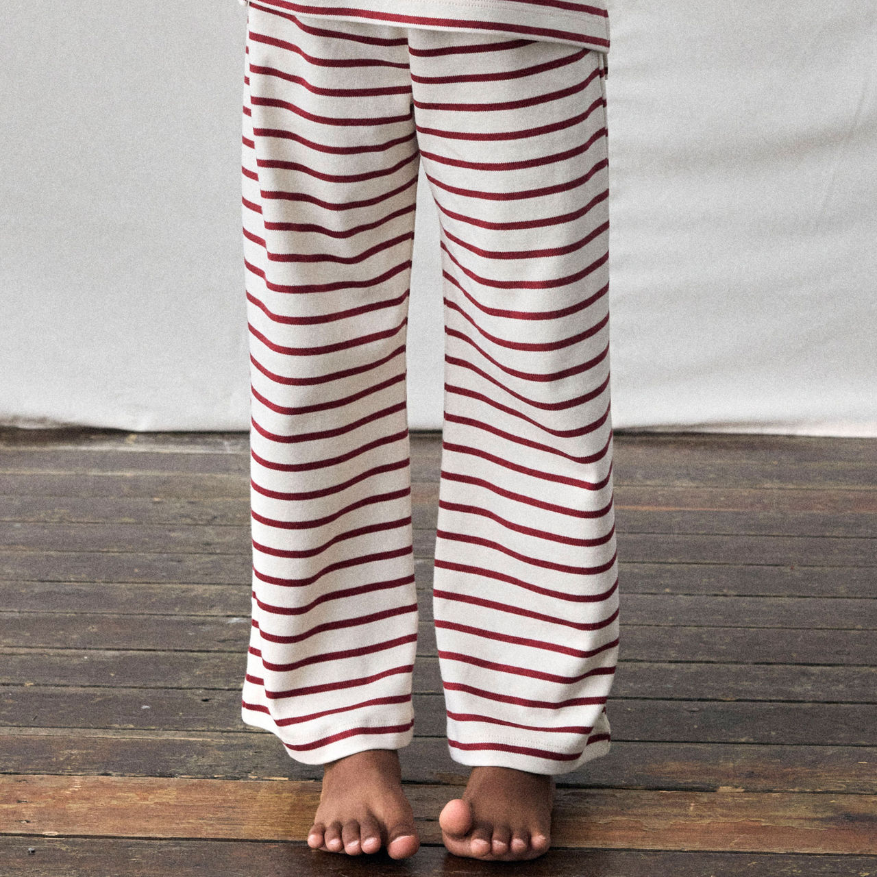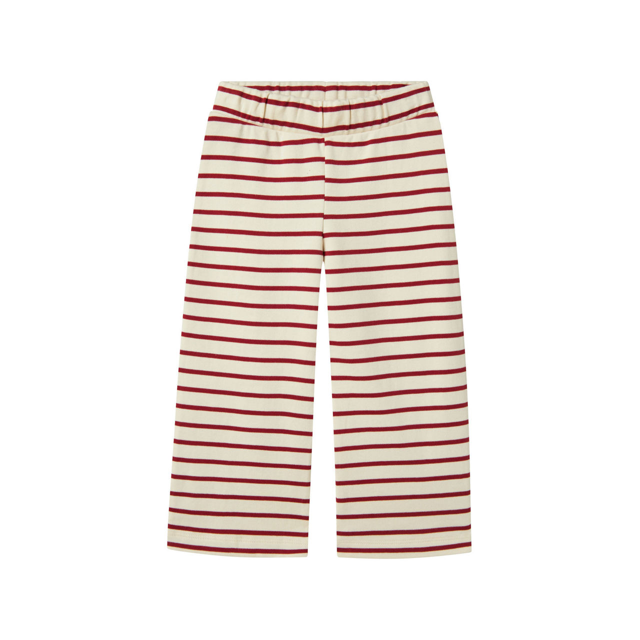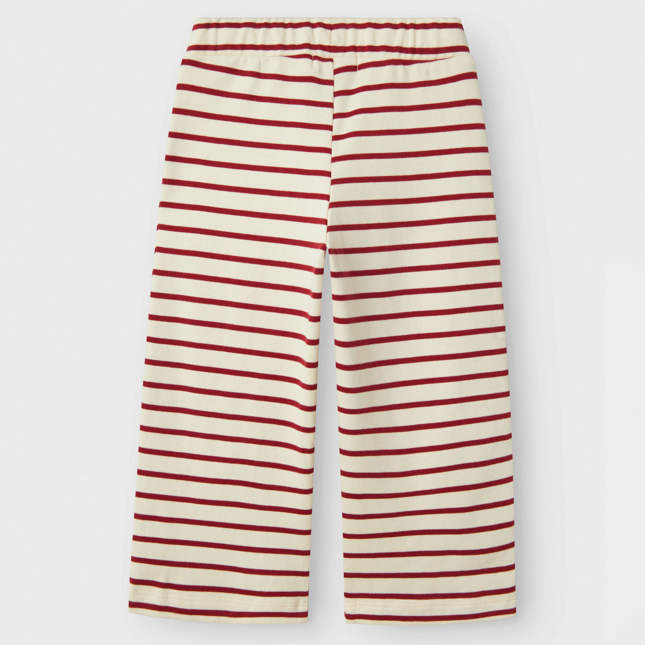 - Elasticated waistband, pull-on style, striped pattern, wide-cut leg, smooth fabric