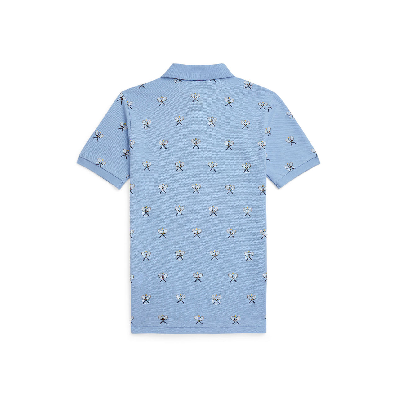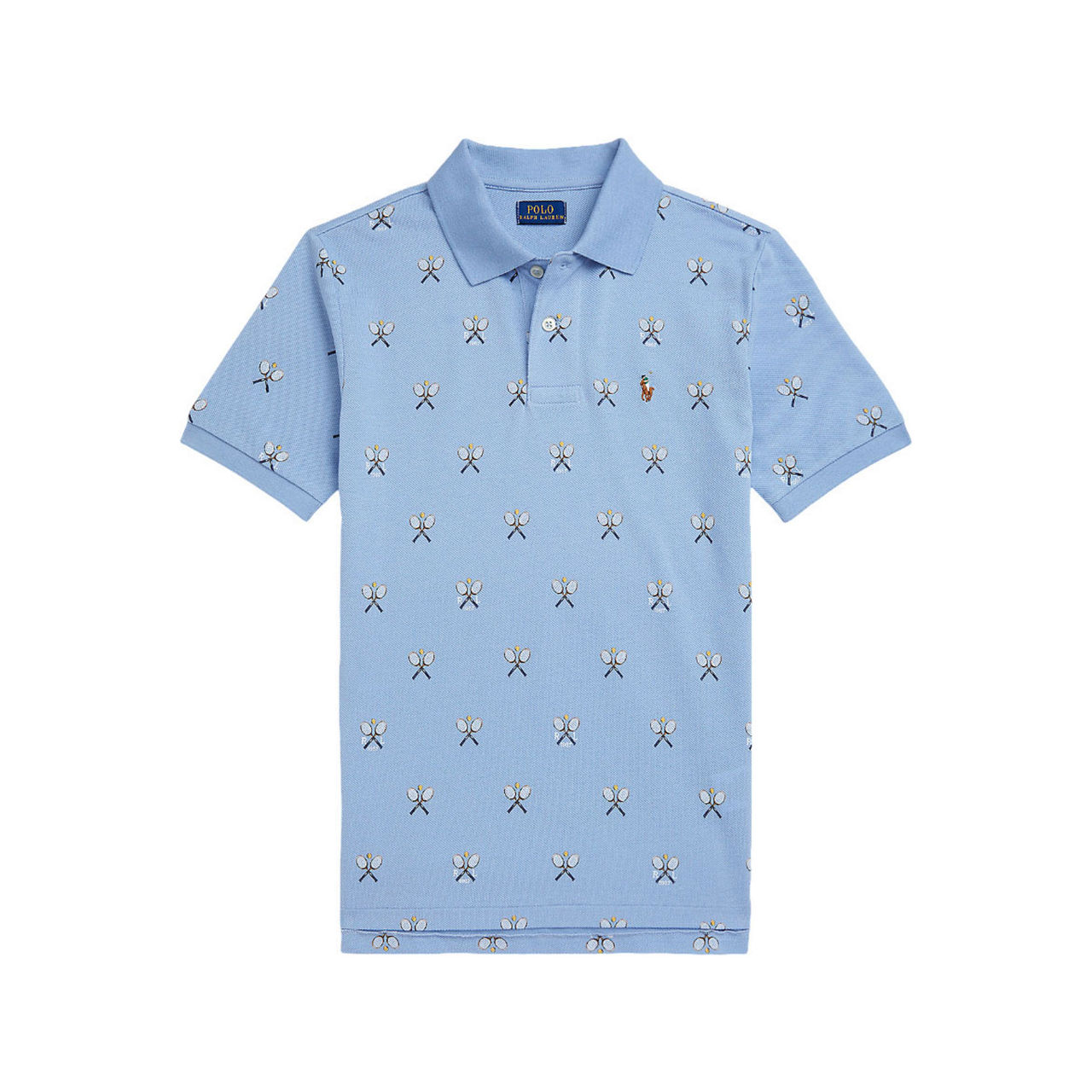 - Short sleeves, polo collar, button fastenings, straight hemline, tennis print, logo detail