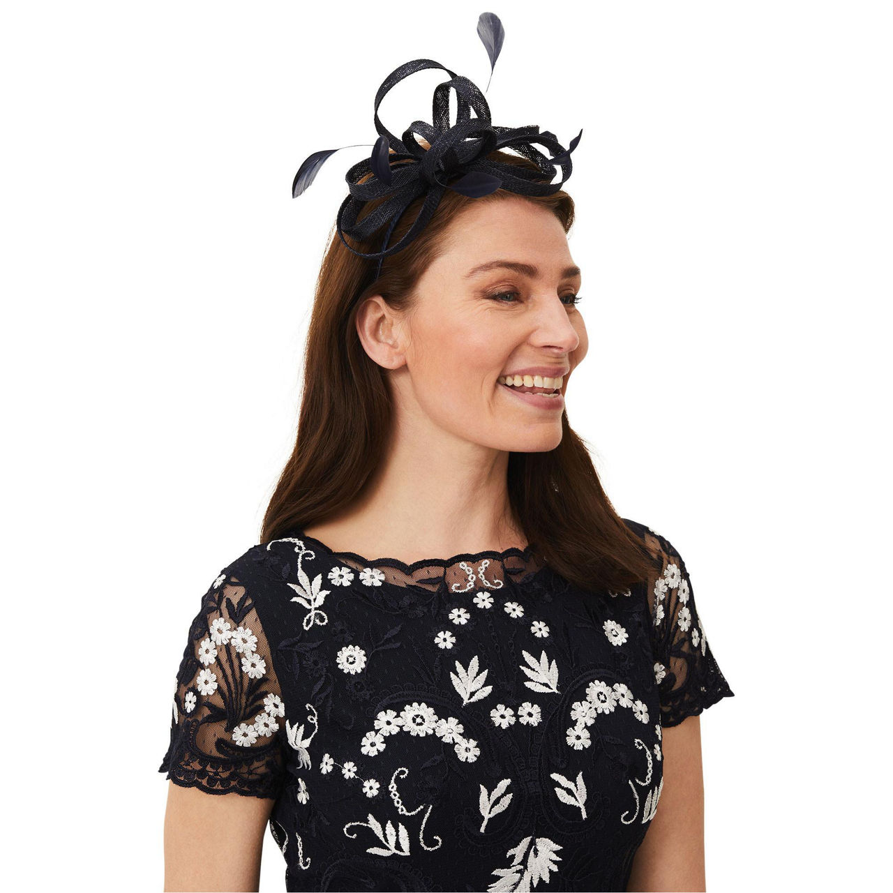 A smaller alternative to hats and fascinators, this twist detail headband from Phase Eight is created in 100% Abaca, and designed with a bow and feather detailing.
