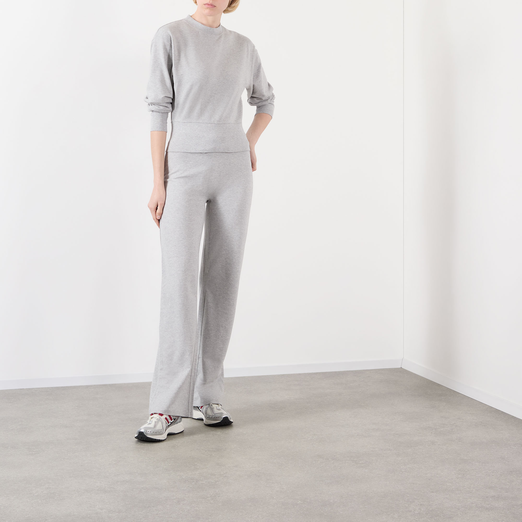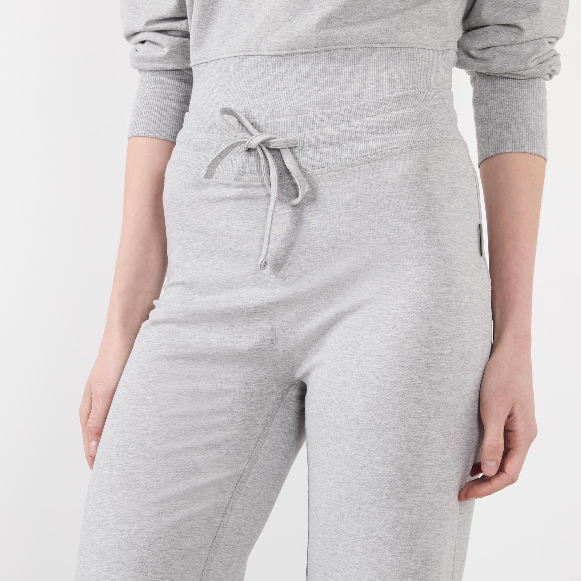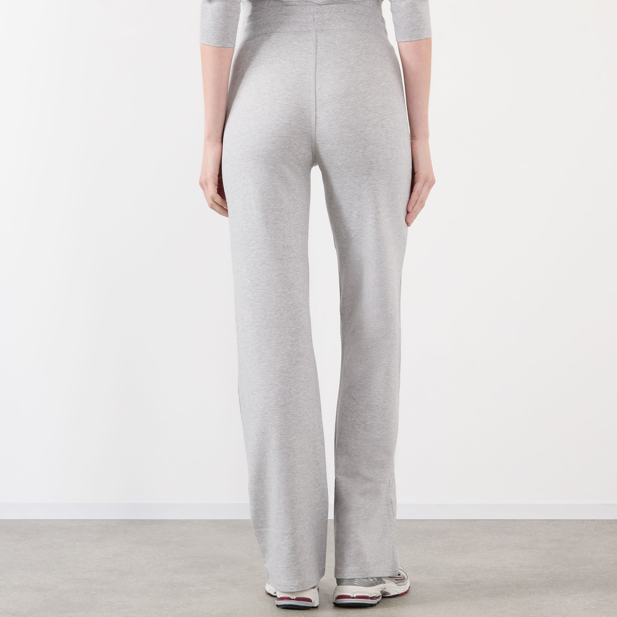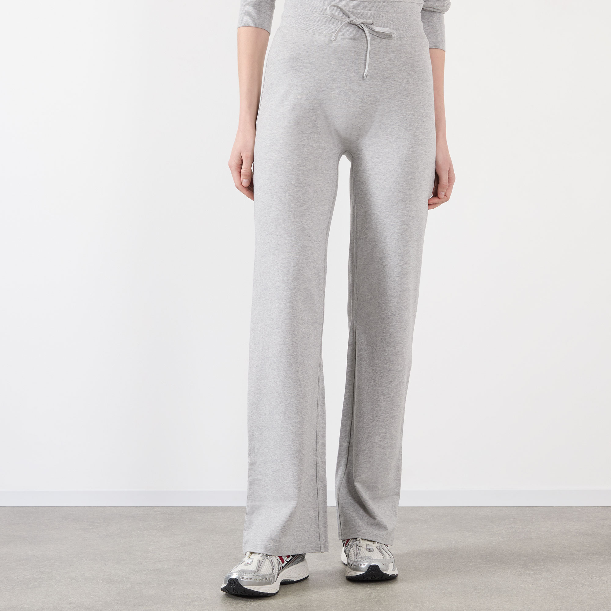 - Elasticated waistband with drawstring adjustable fit, wide-cut legs, logo tab at side seam, melange finish