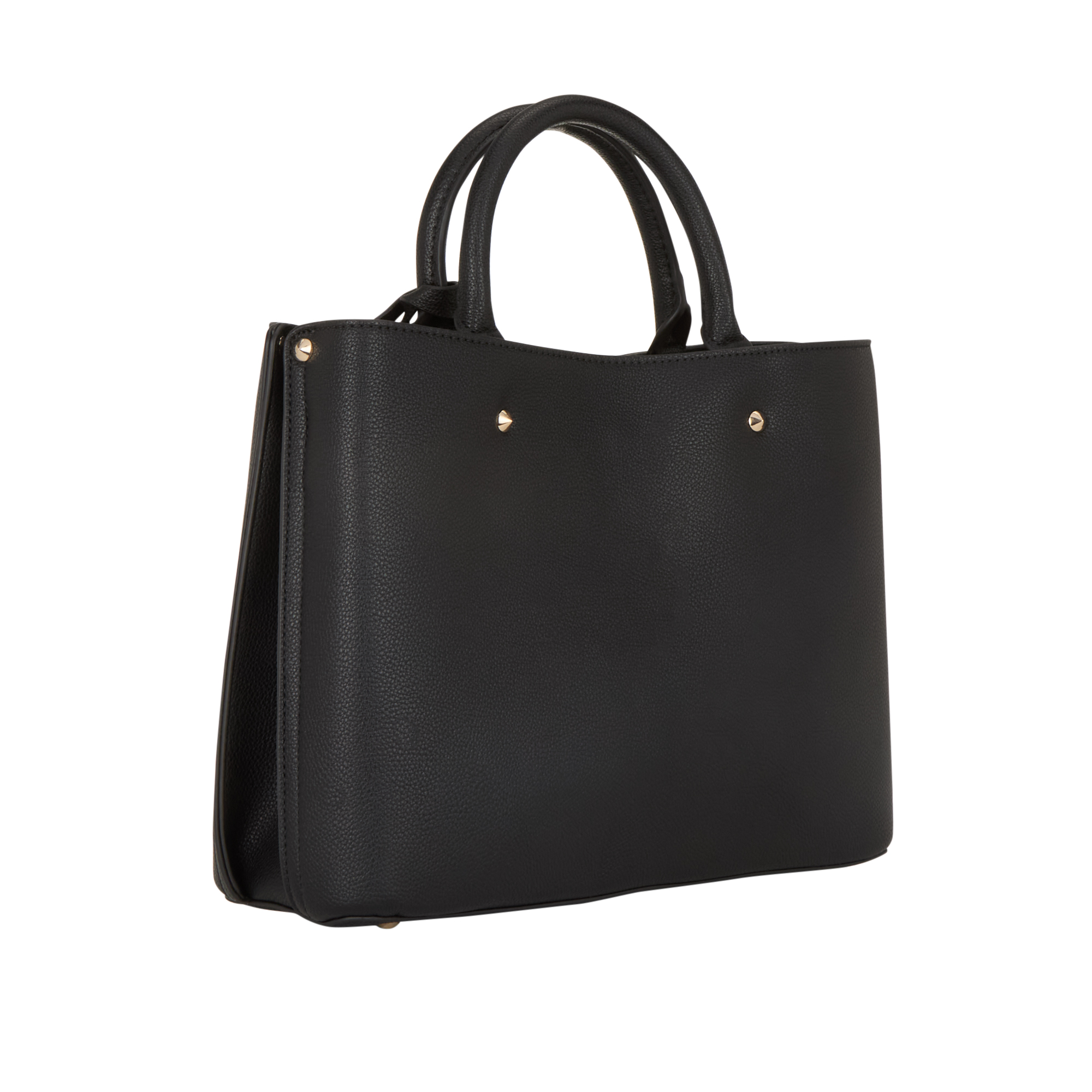 - Carry handles, top zip fastening, detachable and adjustable crossbody strap, detachable tag, triangle logo hardware, gold-tone hardware, four foot studs, textured finish