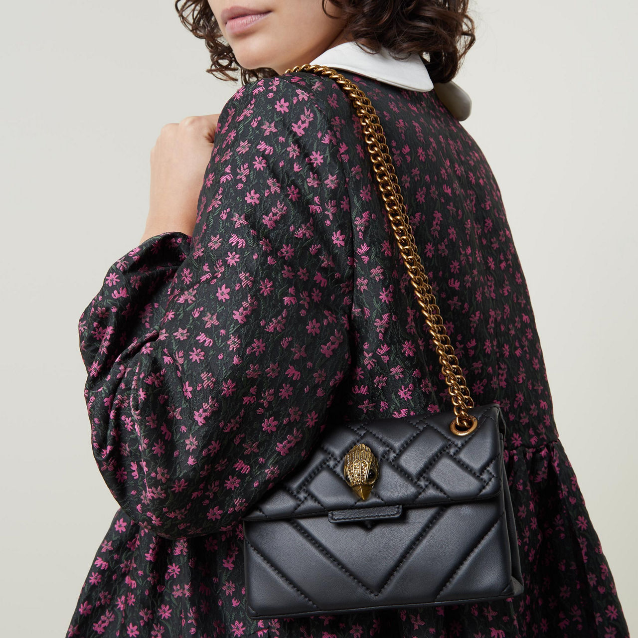 Bring a touch of rebellious glamour to your look with this Kensington Mini Crossbody Bag by Kurt Geiger London. Working a quilted leather construction, the design features a magnetic flap closure, and an eye-catching gunmetal-tone bird detail with crystal embellishment. The strap can be worn short or long, making this the perfect bag for day-to-day wear.