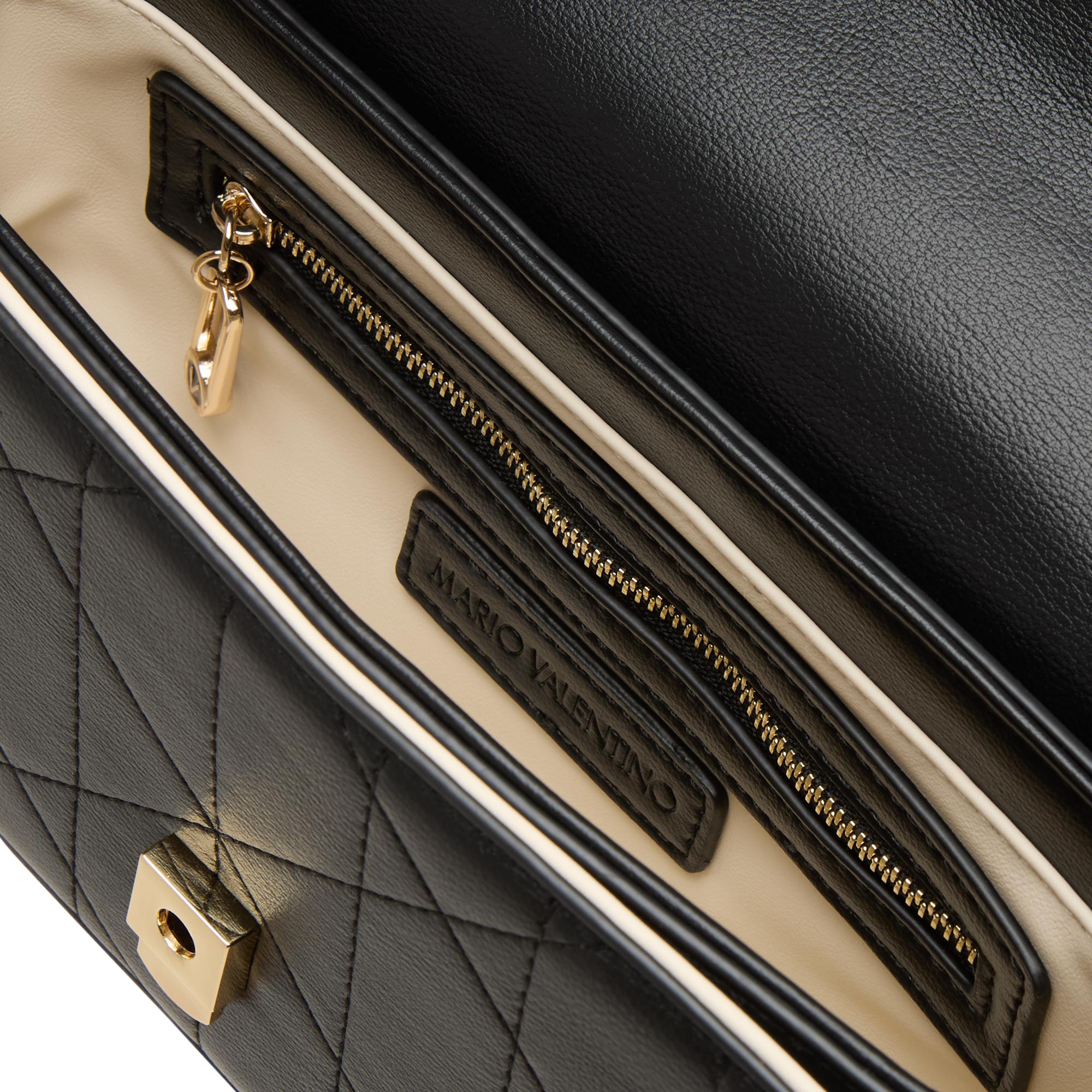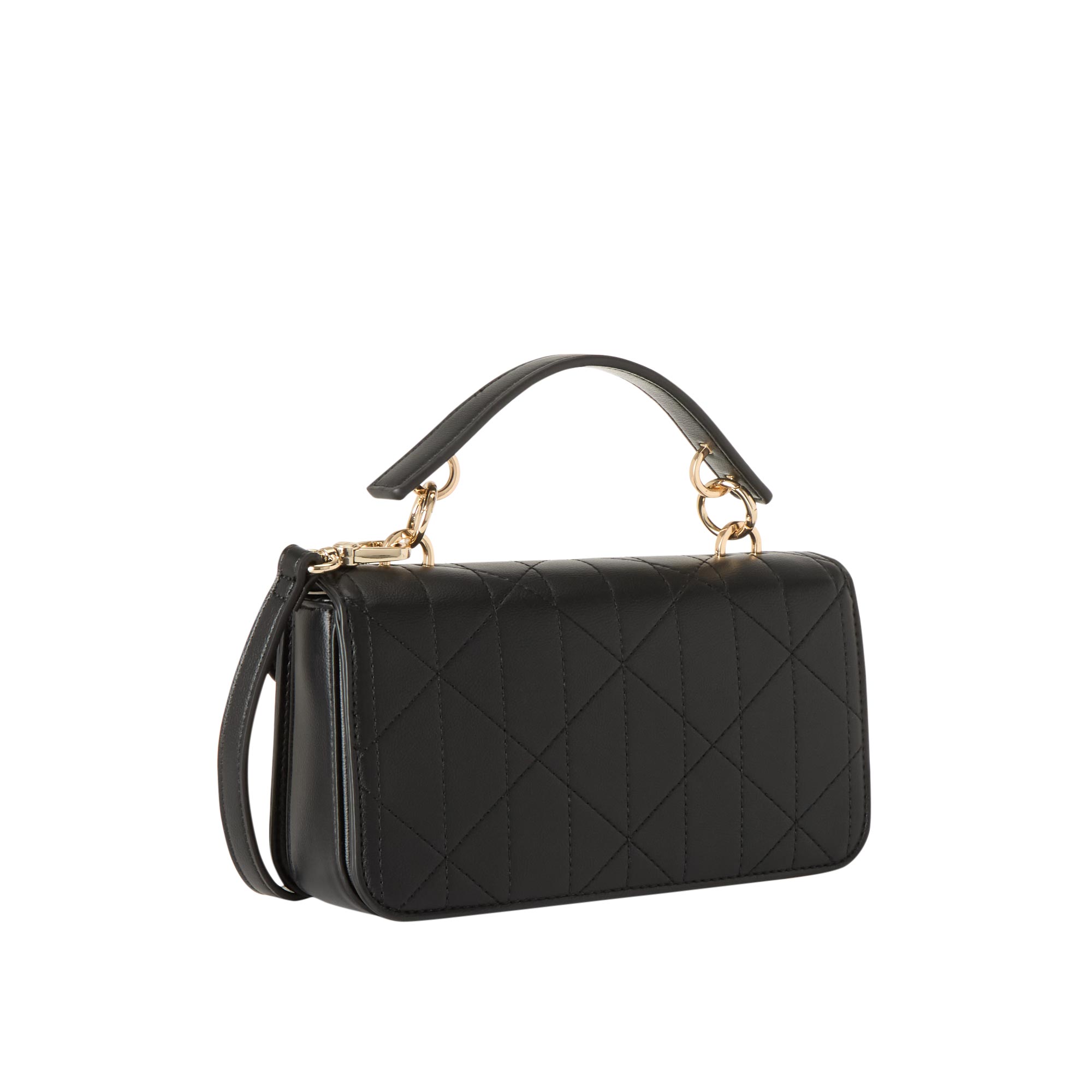 - Flap fastening with snap clasp closure, quilted, gold-tone hardware, logo details, fixed top carry handle, detachable and adjustable crossbody strap