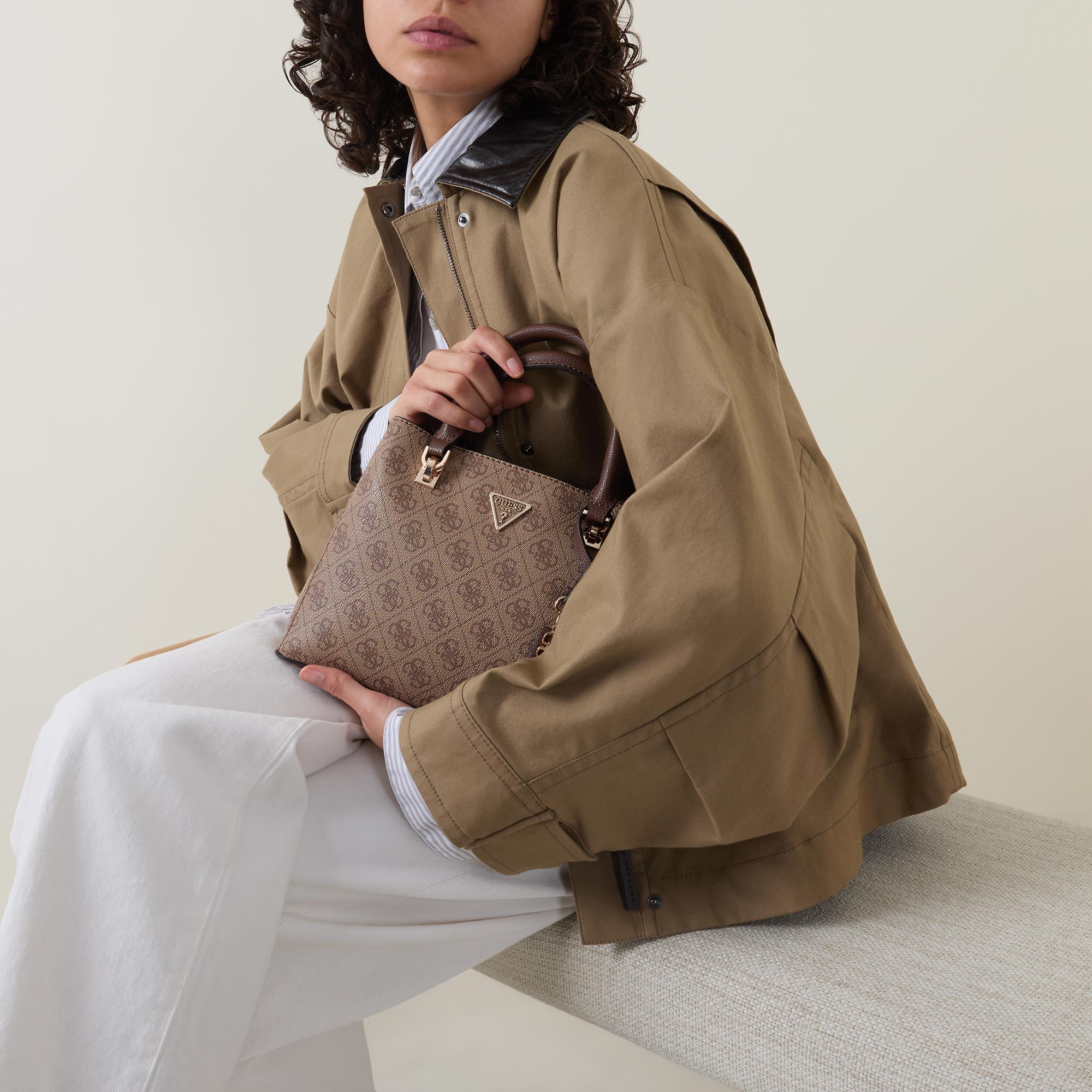 - Top carry handles, detachable and adjustable strap, gold-tone hardware, top zip fastening, branded swing tag with charm details, 4G logo print, one zipped pocket to the back
