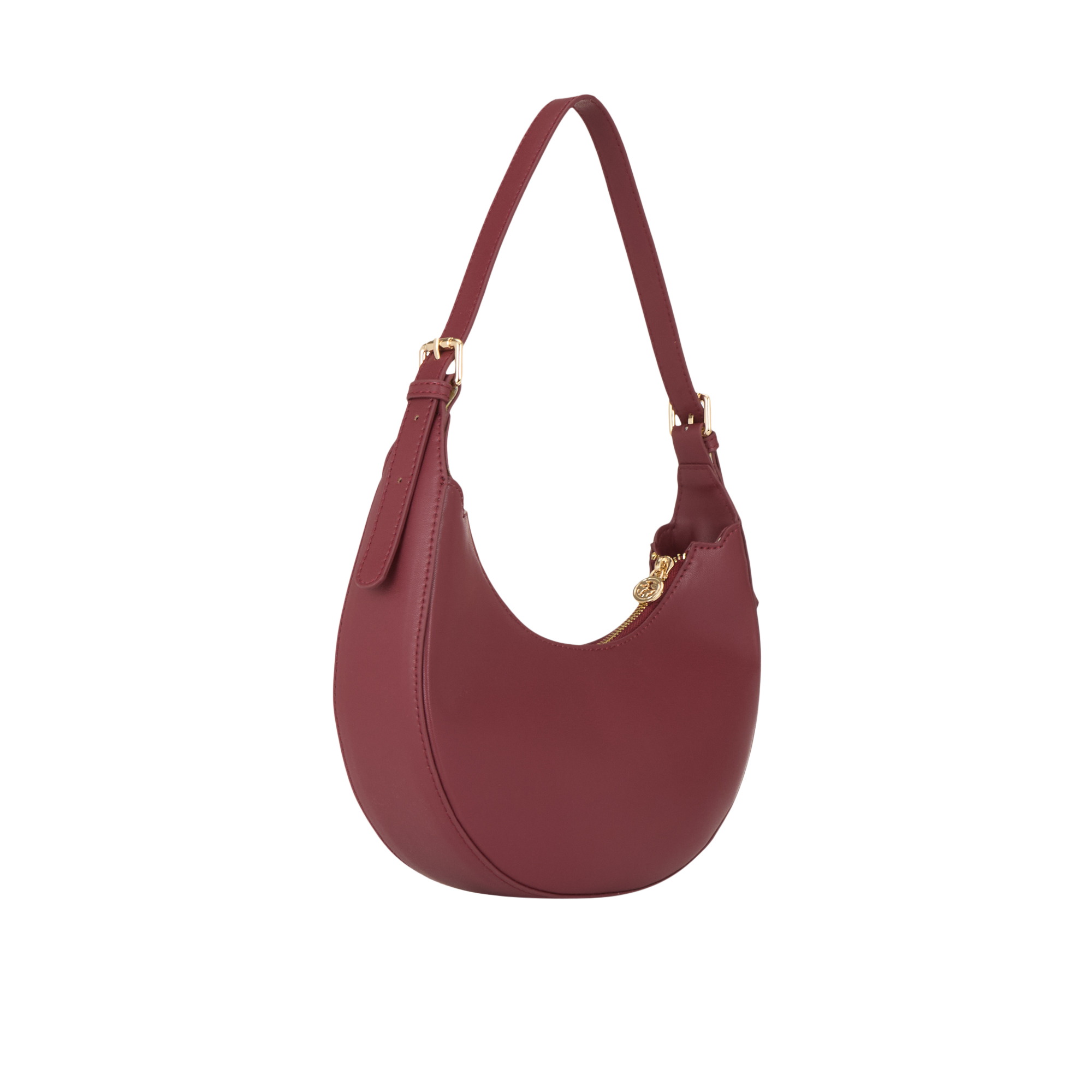 - Gold-toned hardware, half moon shape, adjustable top handle, top-zip fastening, logo detail
