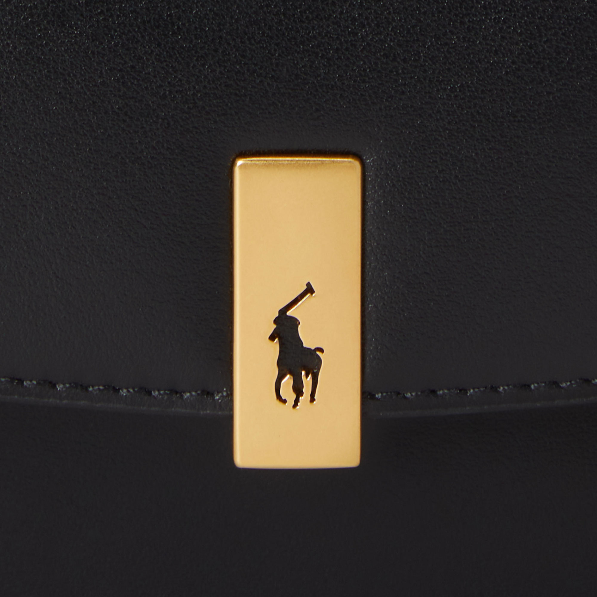 • Polo ID collection piece, envelope silhouette, chain link–and-leather strap, magnetic teardrop slide lock, signature Pony cut-out on metal hardware, front fold-over flap, dust bag