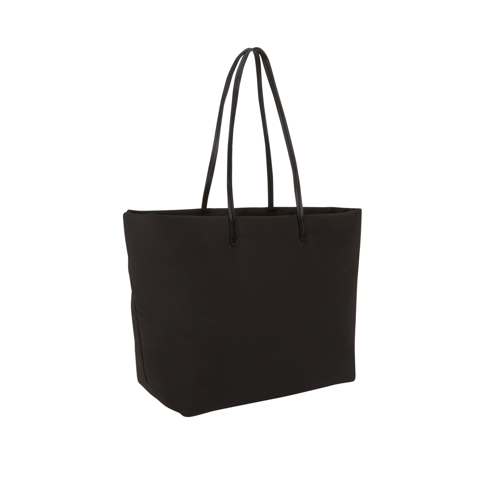 • Top carry handle, zip fastening, silver-tone hardware, logo details, boxy silhouette