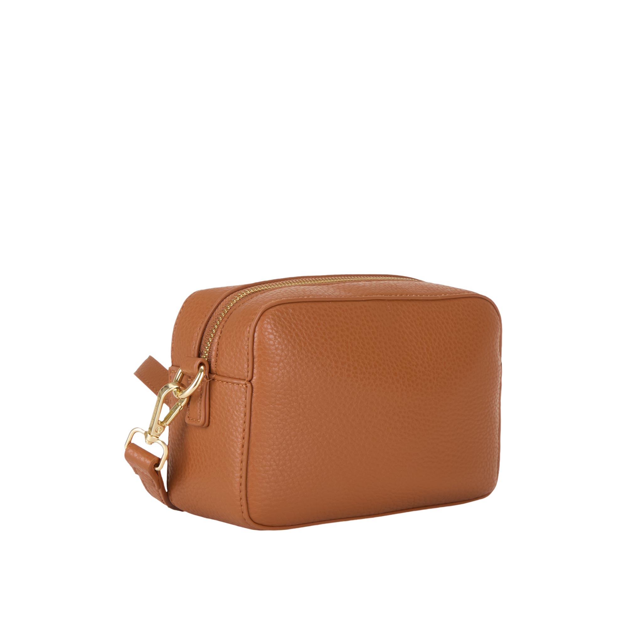 - Top zip-fastening closure, detachable adjustable logo crossbody strap, gold-tone hardware, front logo lettering, grained finish