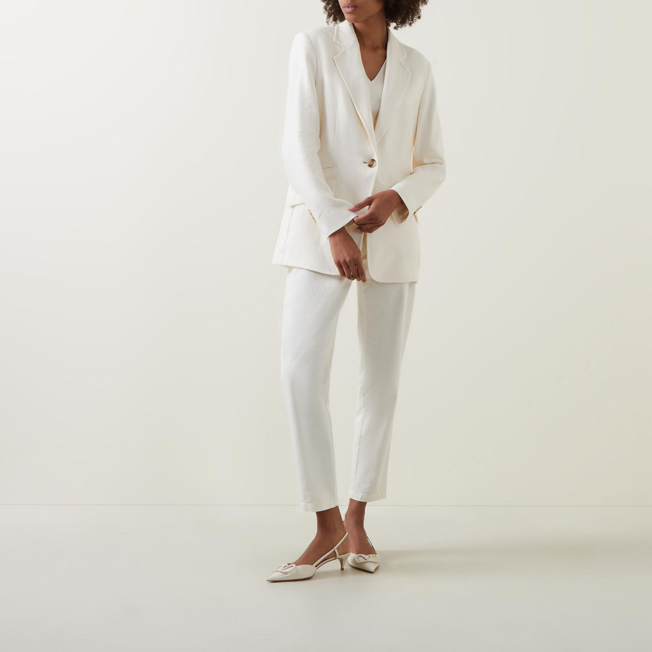 - Composition and Care: Main: 67% linen, 31% viscose, 2% elastane. Lining: 54% viscose, 43% polyamide, 3% elastane. Dry clean