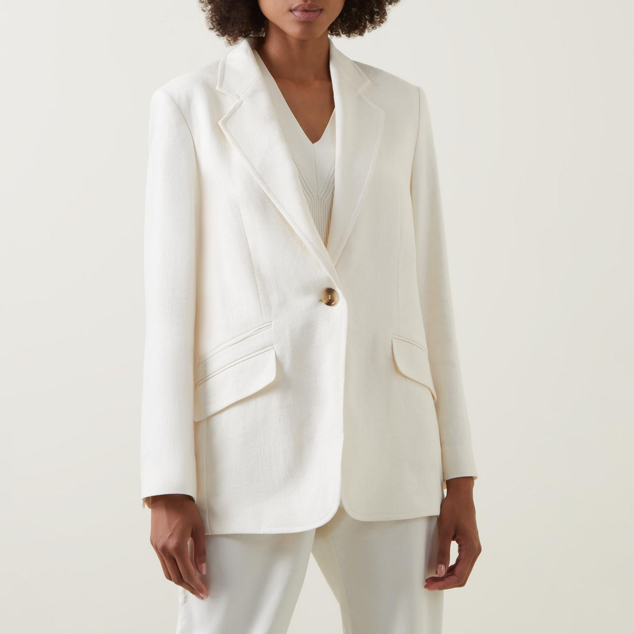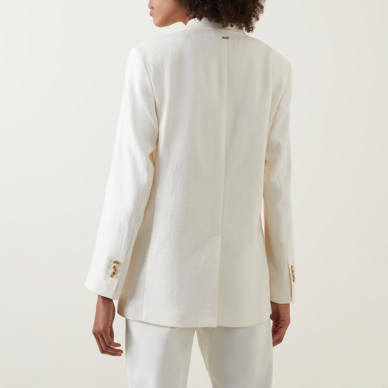 - Single-breasted front, notched lapels, long sleeves, button fastening, two flap pockets, one faux welt pocket, buttoned cuffs, back hem vent, smooth fabric