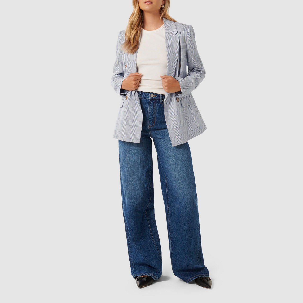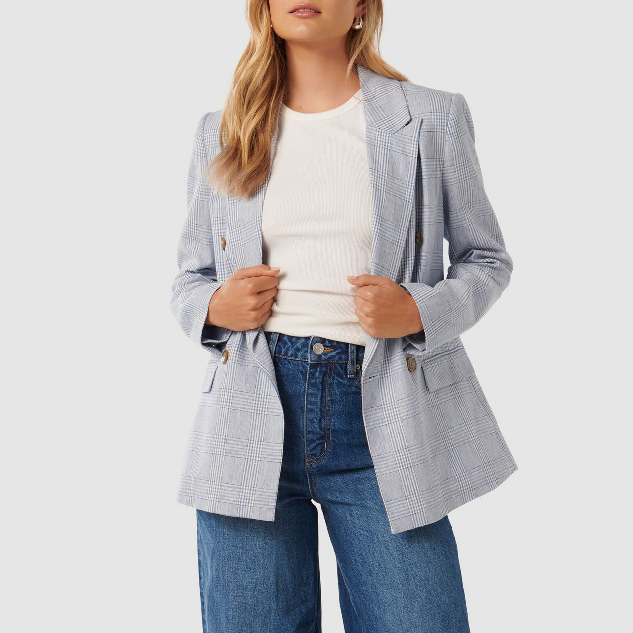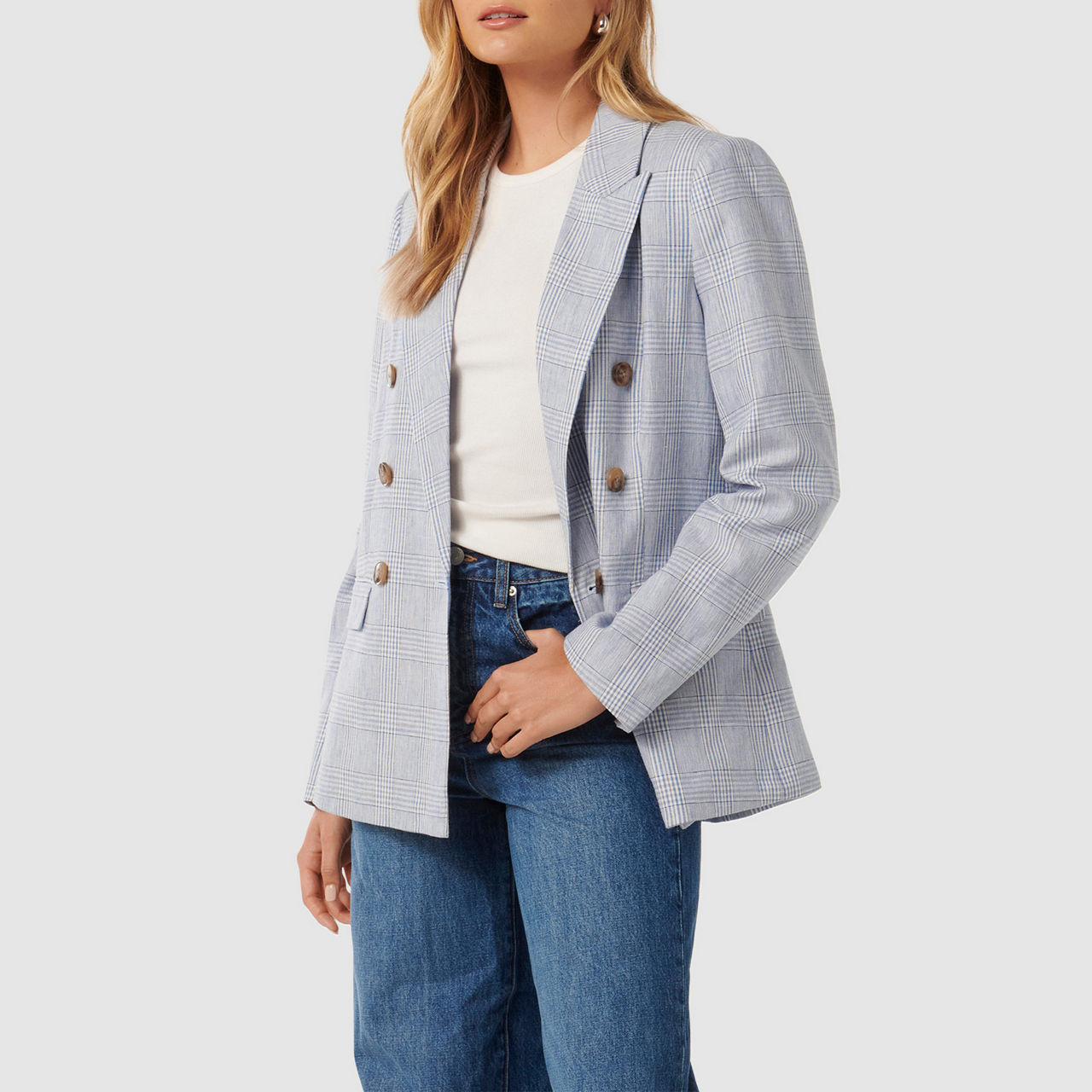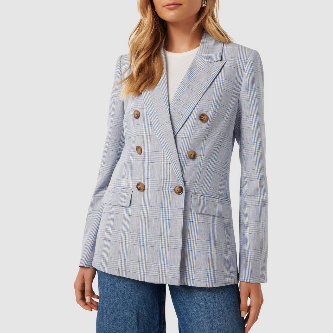 FOREVER NEW Ivy Double-Breasted Check Blazer