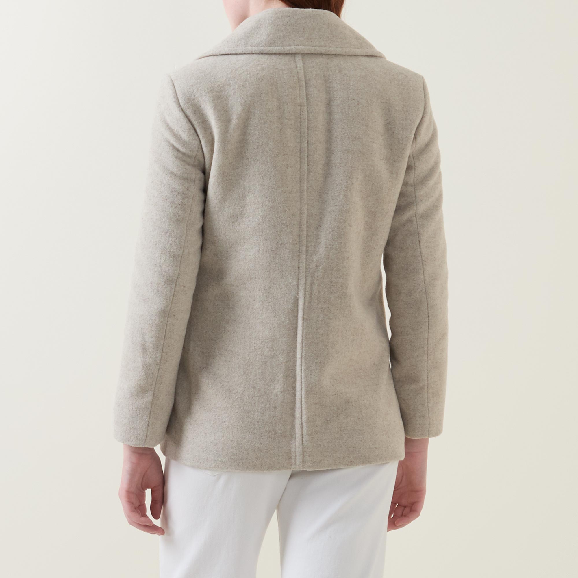 - Double-breasted, button fastening, notched lapel, side pockets, lined