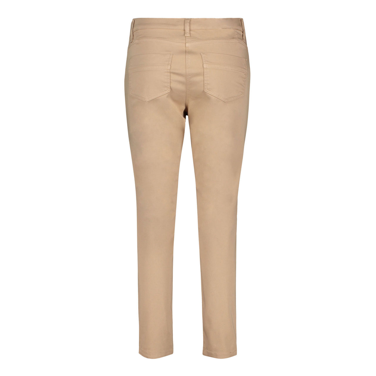 - Mid-rise, slim-leg, full-length, belt loops, concealed fly and button fastening, five-pocket styling, clean hems