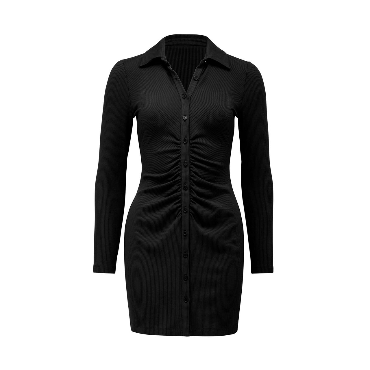 - Length: 82cm (Size 8). Fitted silhouette. Lightweight jersey fabrication. Polo neck. Full-length sleeves. Ruching through the waist. Fitted mini skirt. Slip-on style.