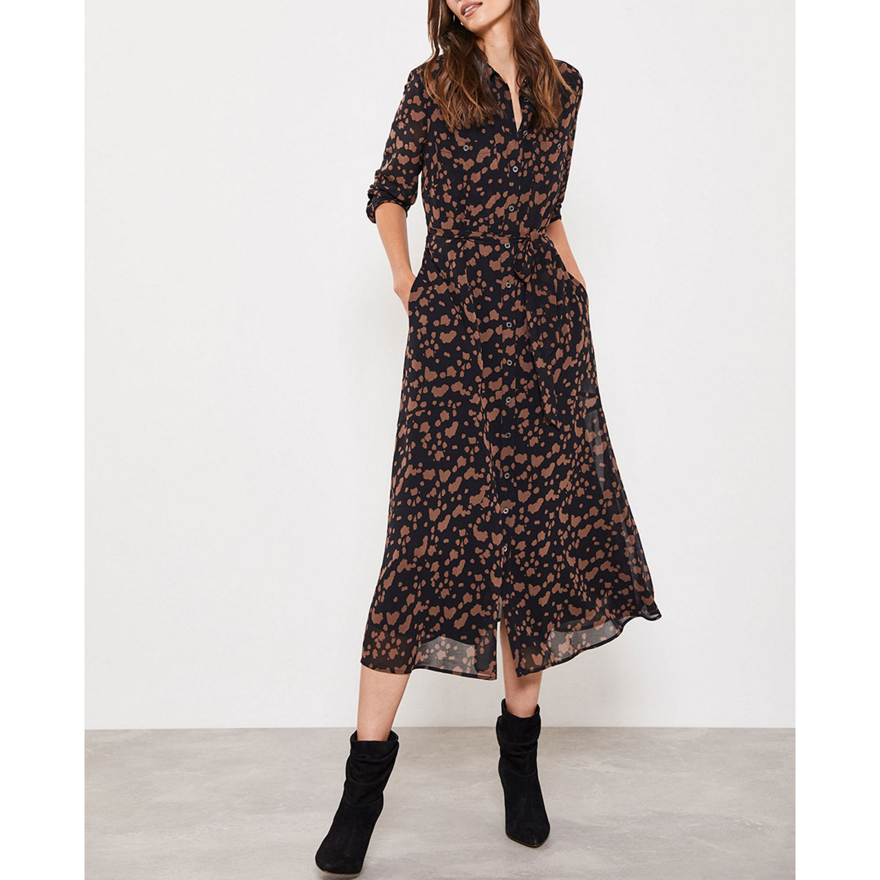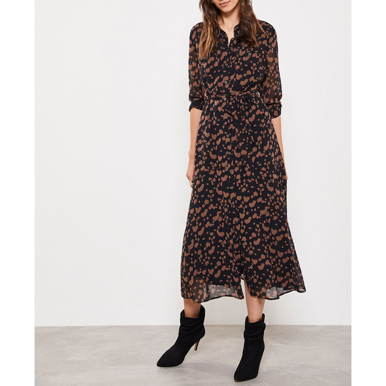 MINT VELVET Erin Animal Midi Shirt Dress