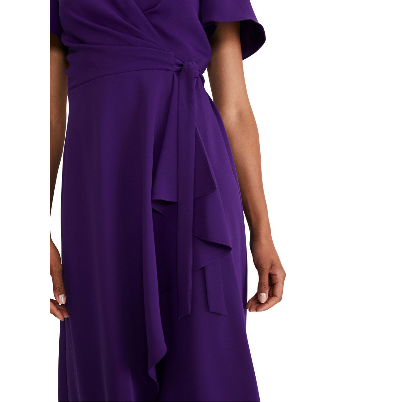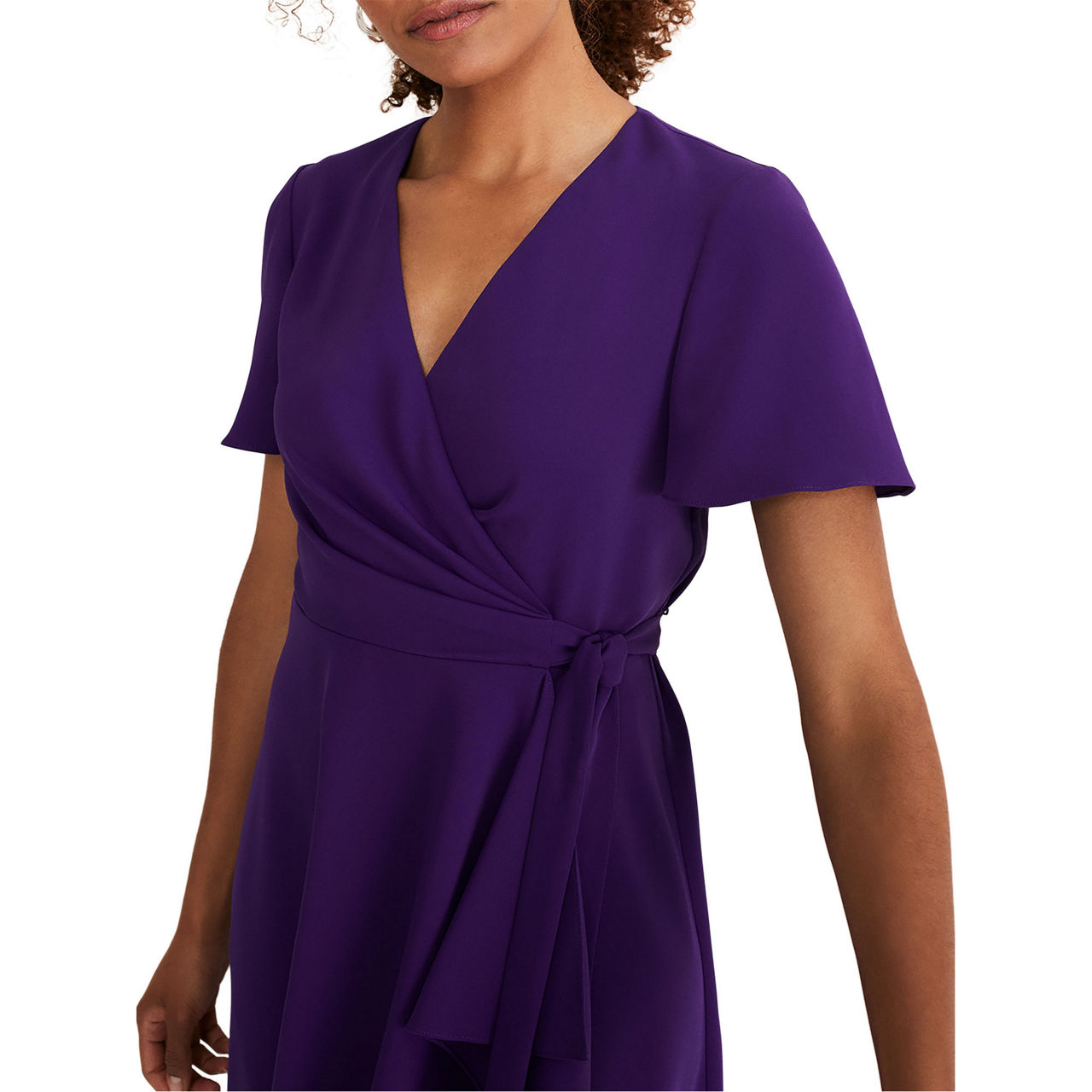 A layered frill hem adds impact to Phase Eight's elegant Julissa dress, which is framed by softly fluted sleeves, and is finished with a matching waist tie to highlight your silhouette. Perfect for your future RSVPs.