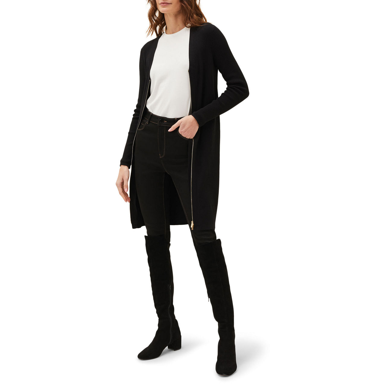 The beauty of Phase Eight's Milla tunic dress is there are multiple ways to wear it, thanks to its full length, two-way zip. Wear it unzipped as a cardigan over jeans and a T-shirt, or wear it as a dress - the choice is yours. Featuring a modern ribbed texture throughout, this style is framed by a V-neckline and long fitted sleeves.