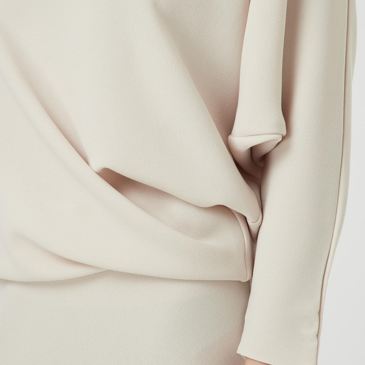 - Long sleeves, round neck, elasticated waist, draped effect.