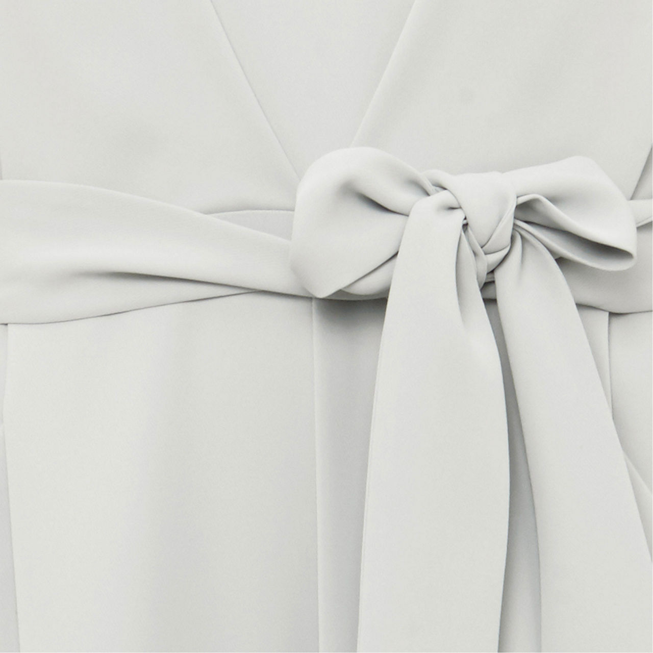 - Long sleeve, V-neck, wide leg, tie detail, concealed zip fastening, pockets.
