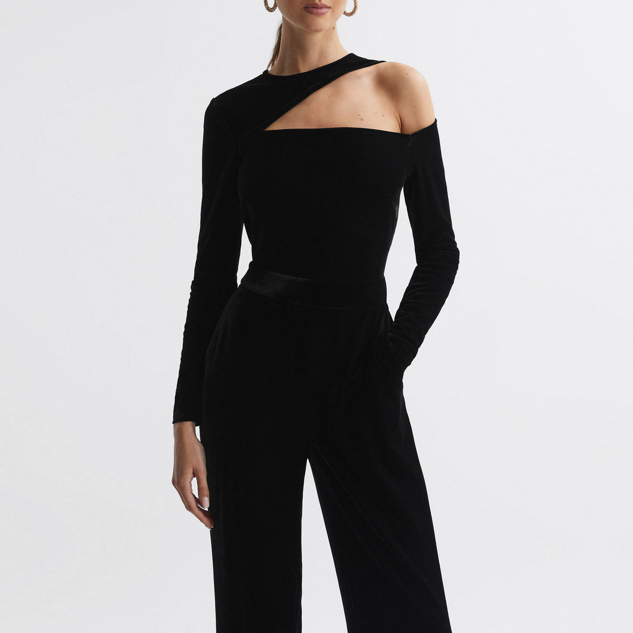 REISS Adele Velvet Off-The-Shoulder Jumpsuit
