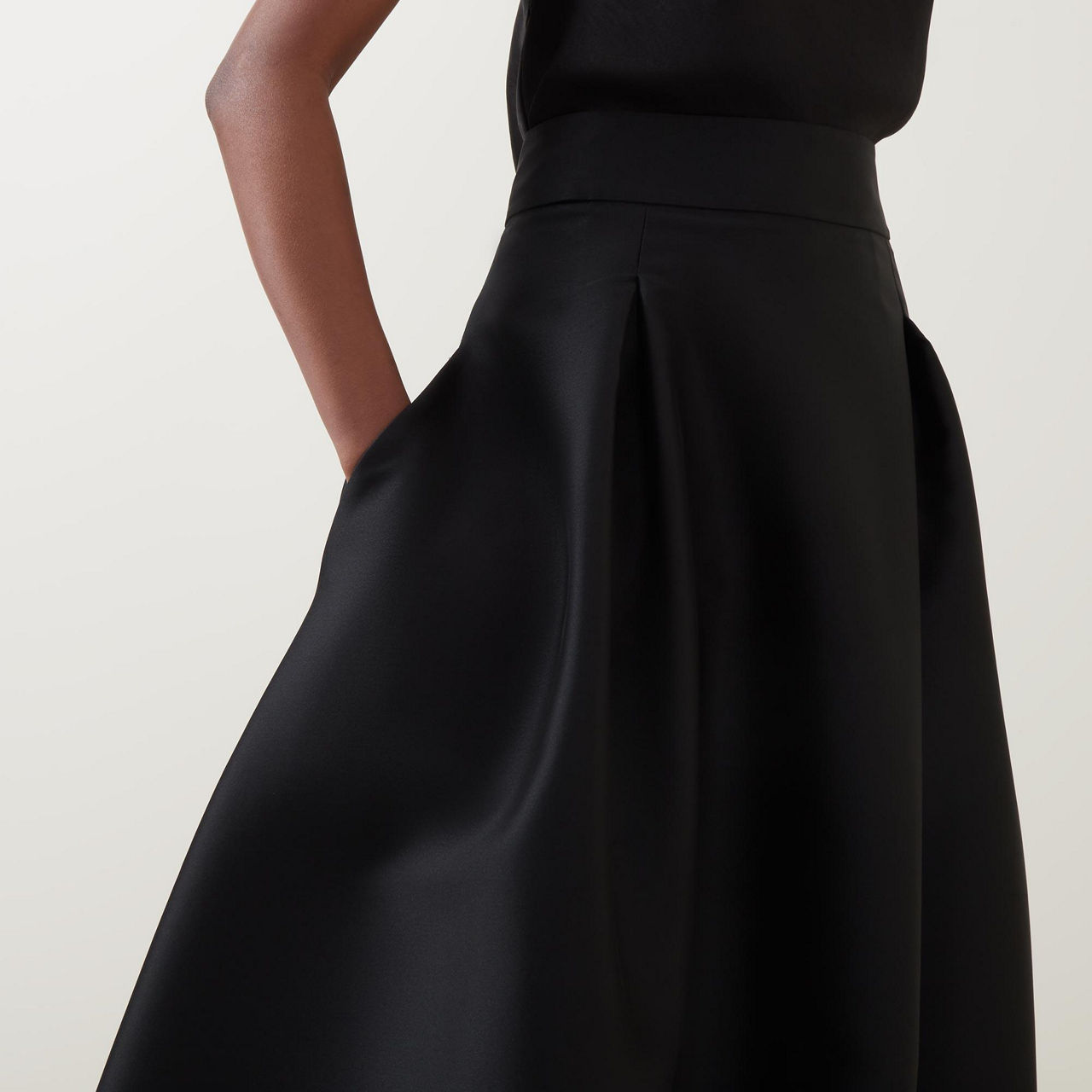 - Maxi, wide waistband, side entry pockets, zip fastening at rear, pleated details