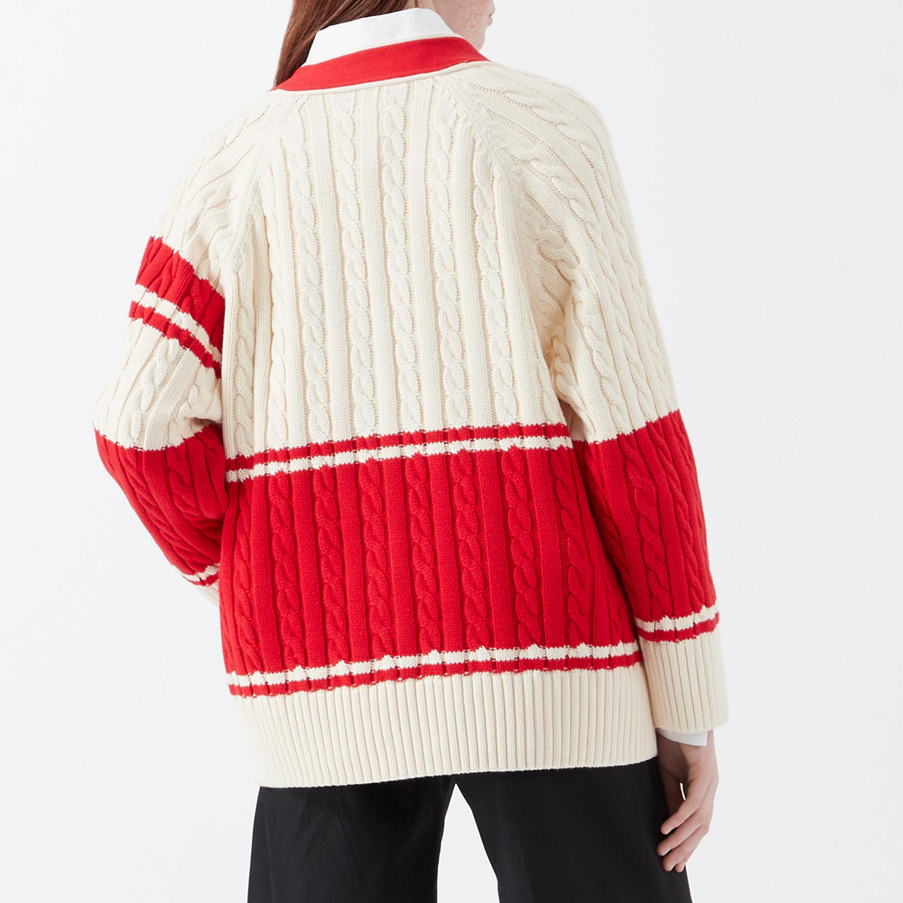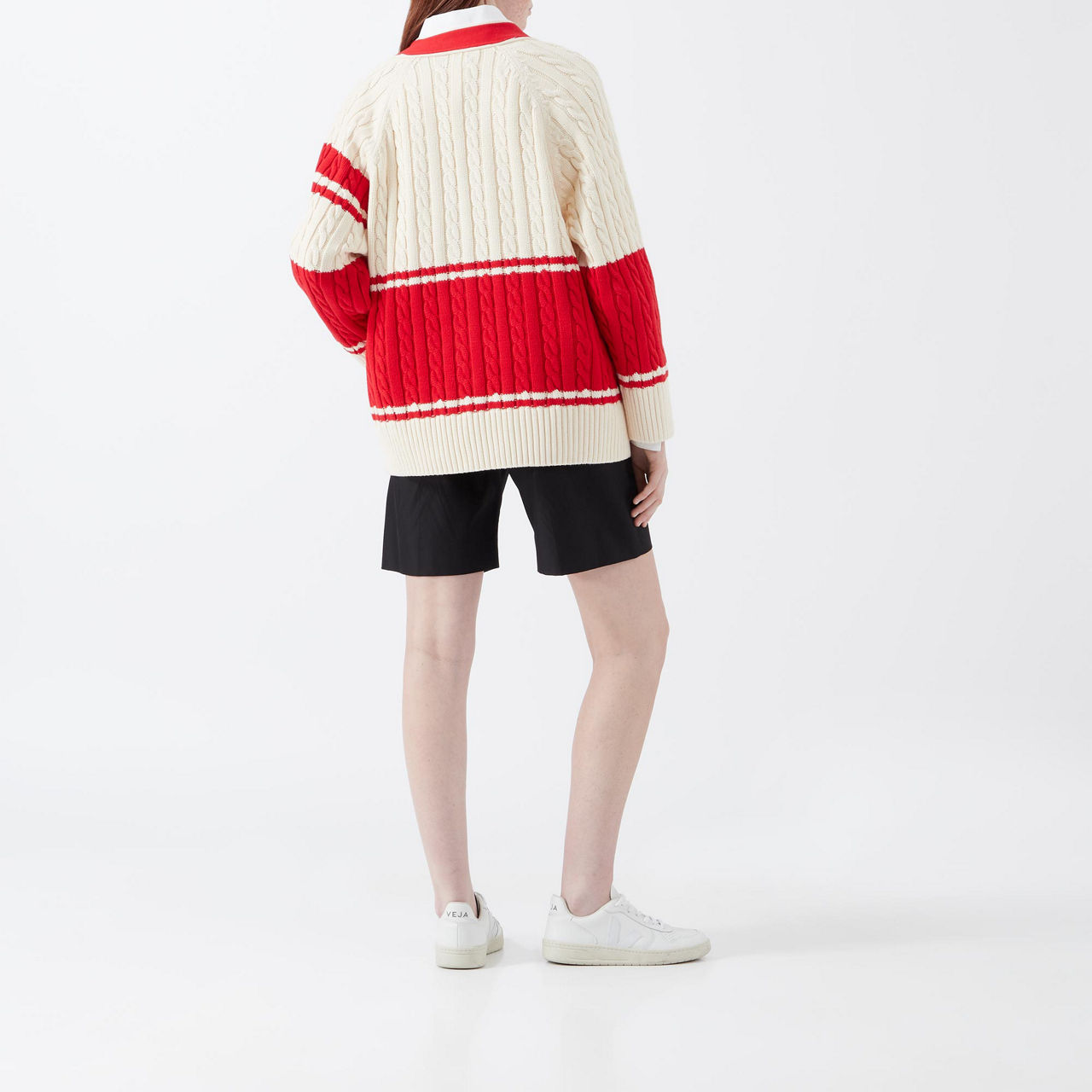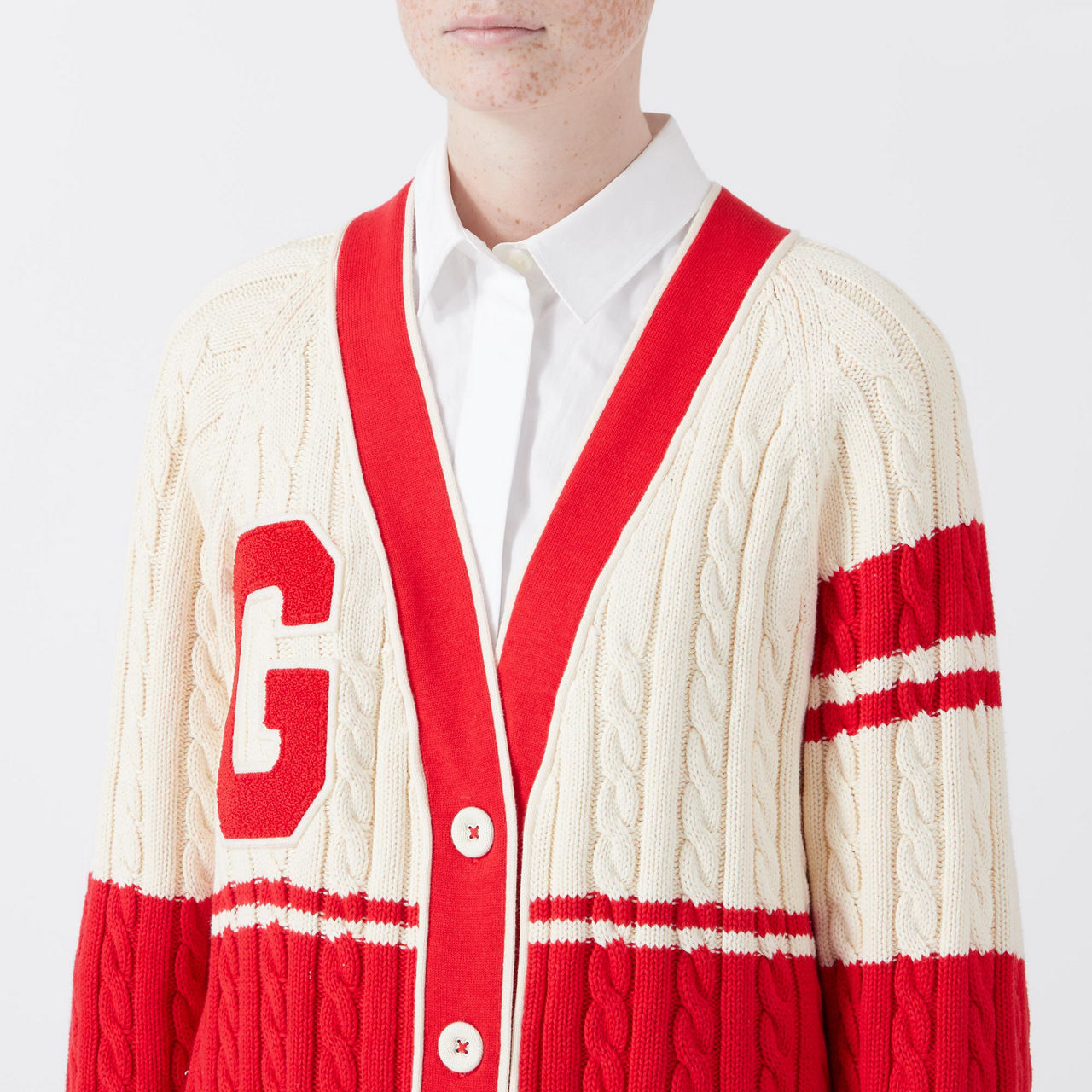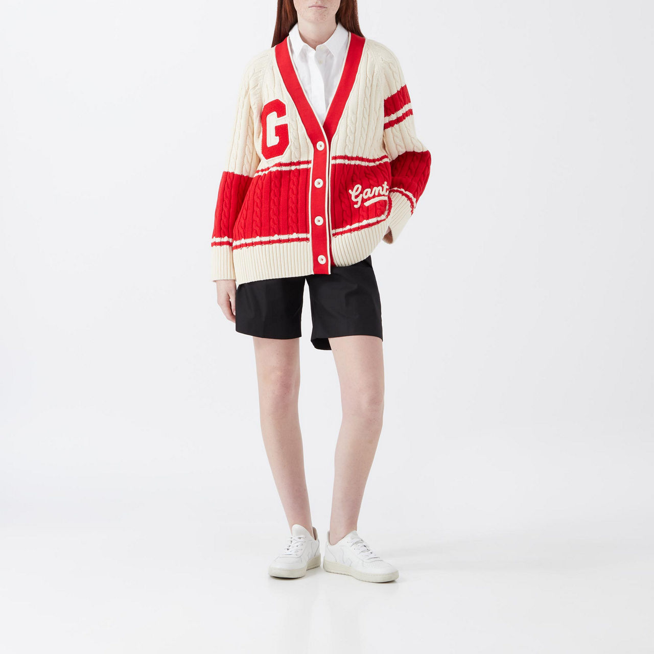 GANT embraces its preppy side with the varsity-inspired design of this cardigan. Note the letterman logo stamped on the chest and bold stripes, while the front is cut with a V-neckline and secured with a row of button fastenings.