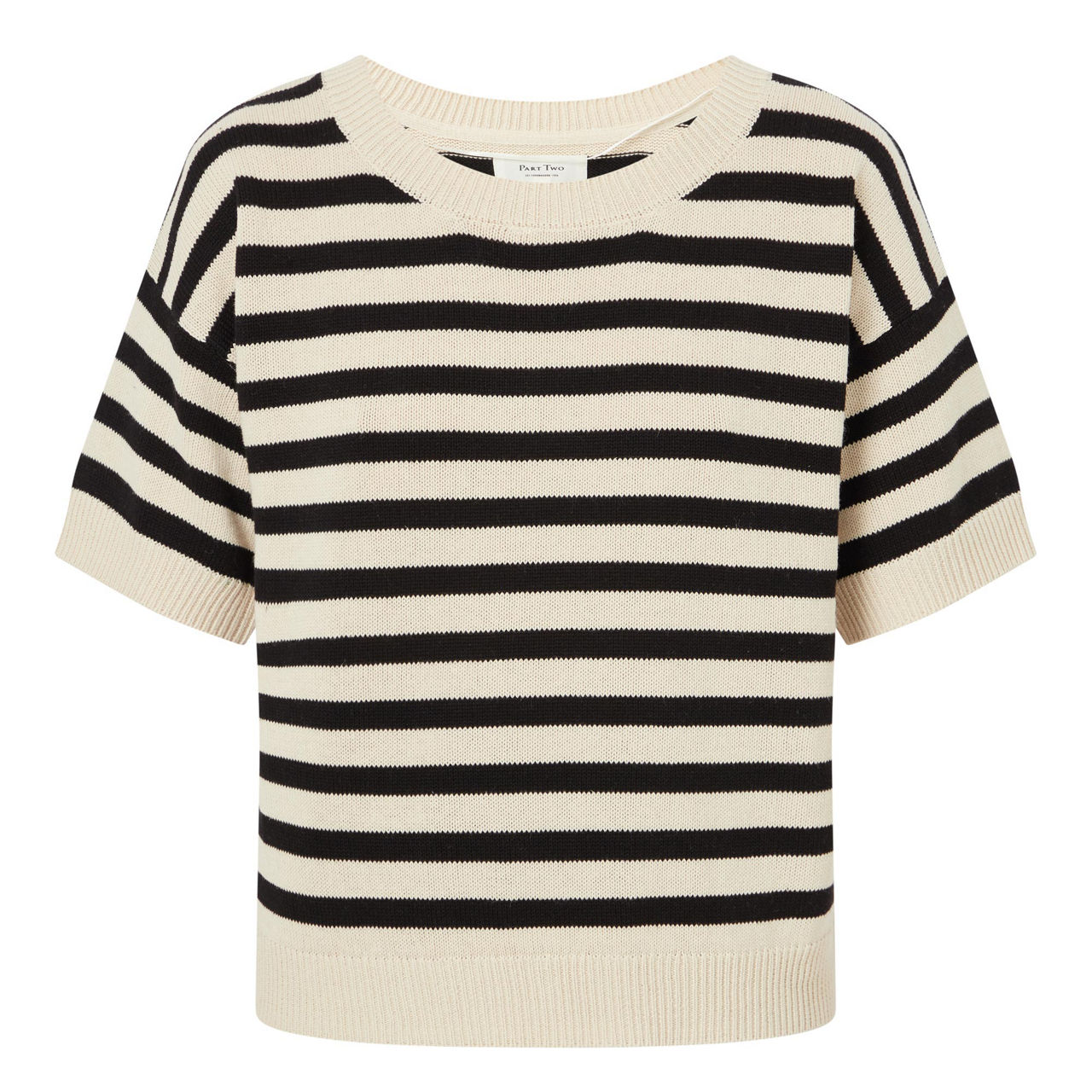 - Crew neckline, short sleeves, ribbed detailing, contrasting stripes.
