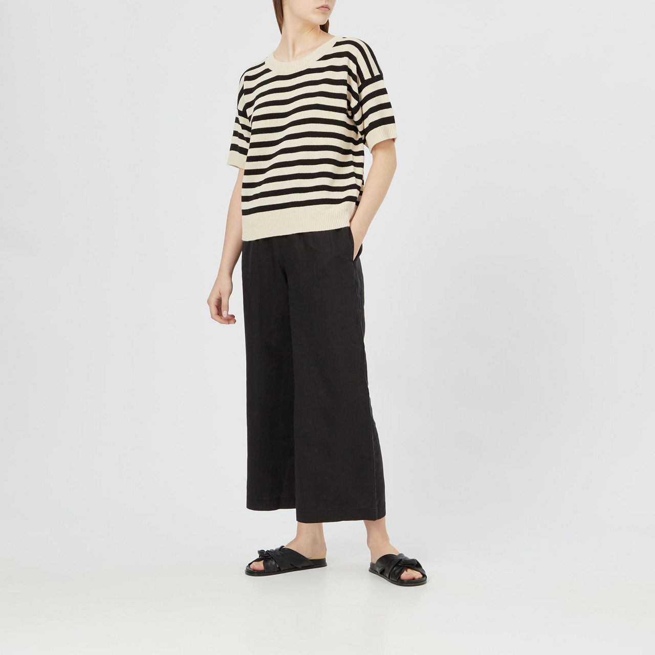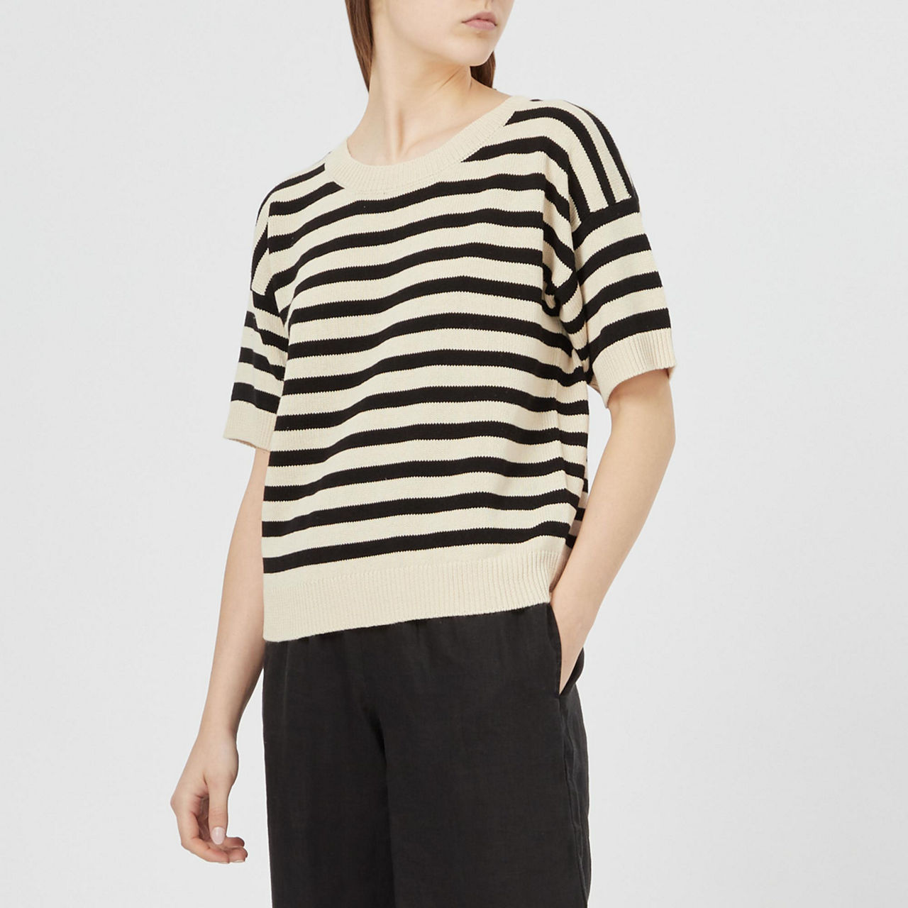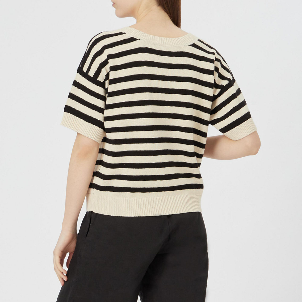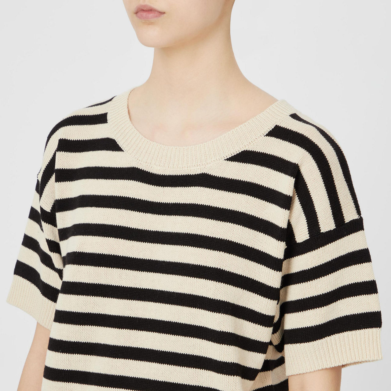 The nautical stripes donning the Priska knitted sweater gives it a relaxed beach feel, and that’s exactly where you could picture it being worn. Whipped up from a cotton blend, its slouchy short-sleeved design is complemented by a classic crew neckline detailed by ribbed trimming at the hemline and cuffs. Wear yours with wide leg trousers on your next beach stroll for a casual take.