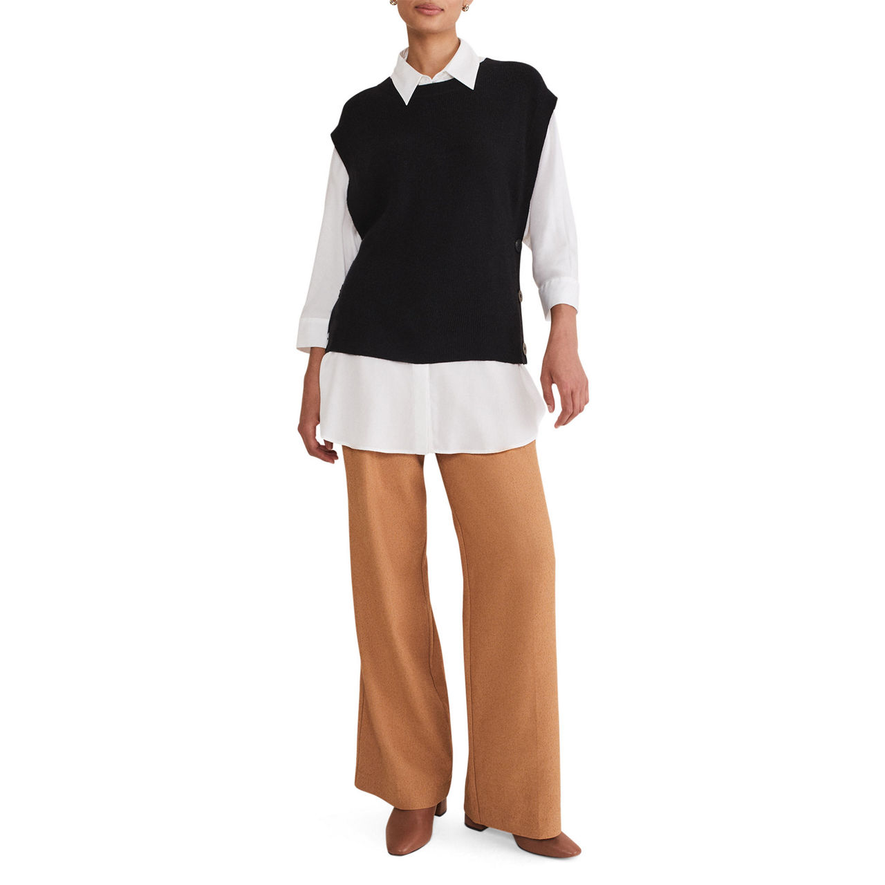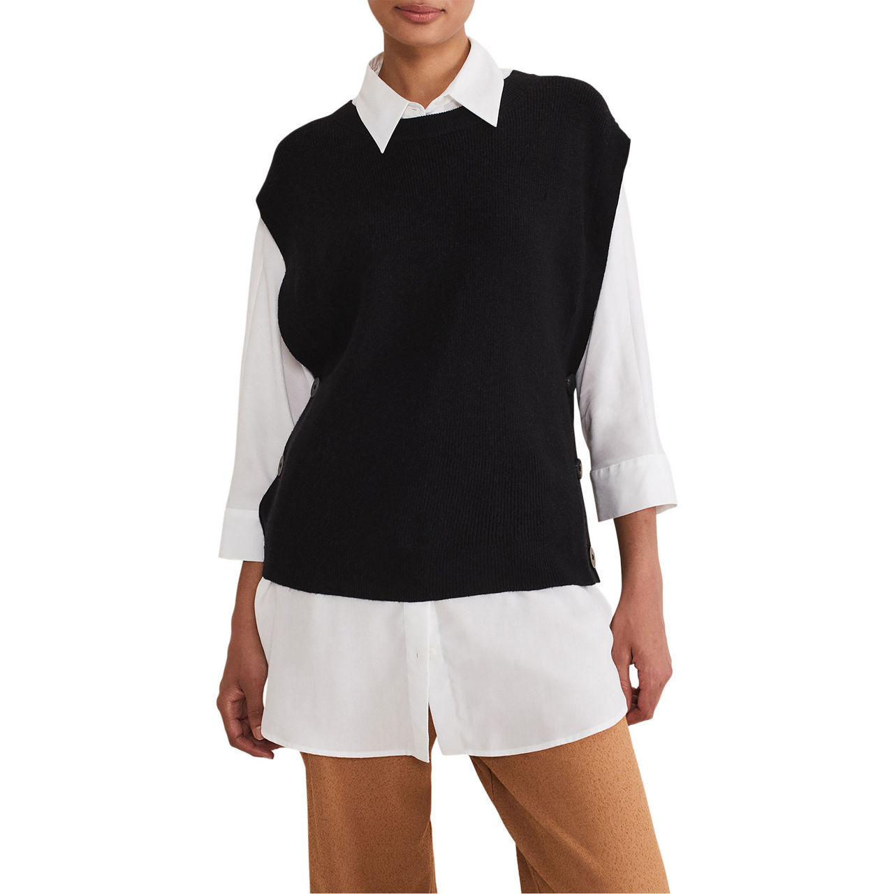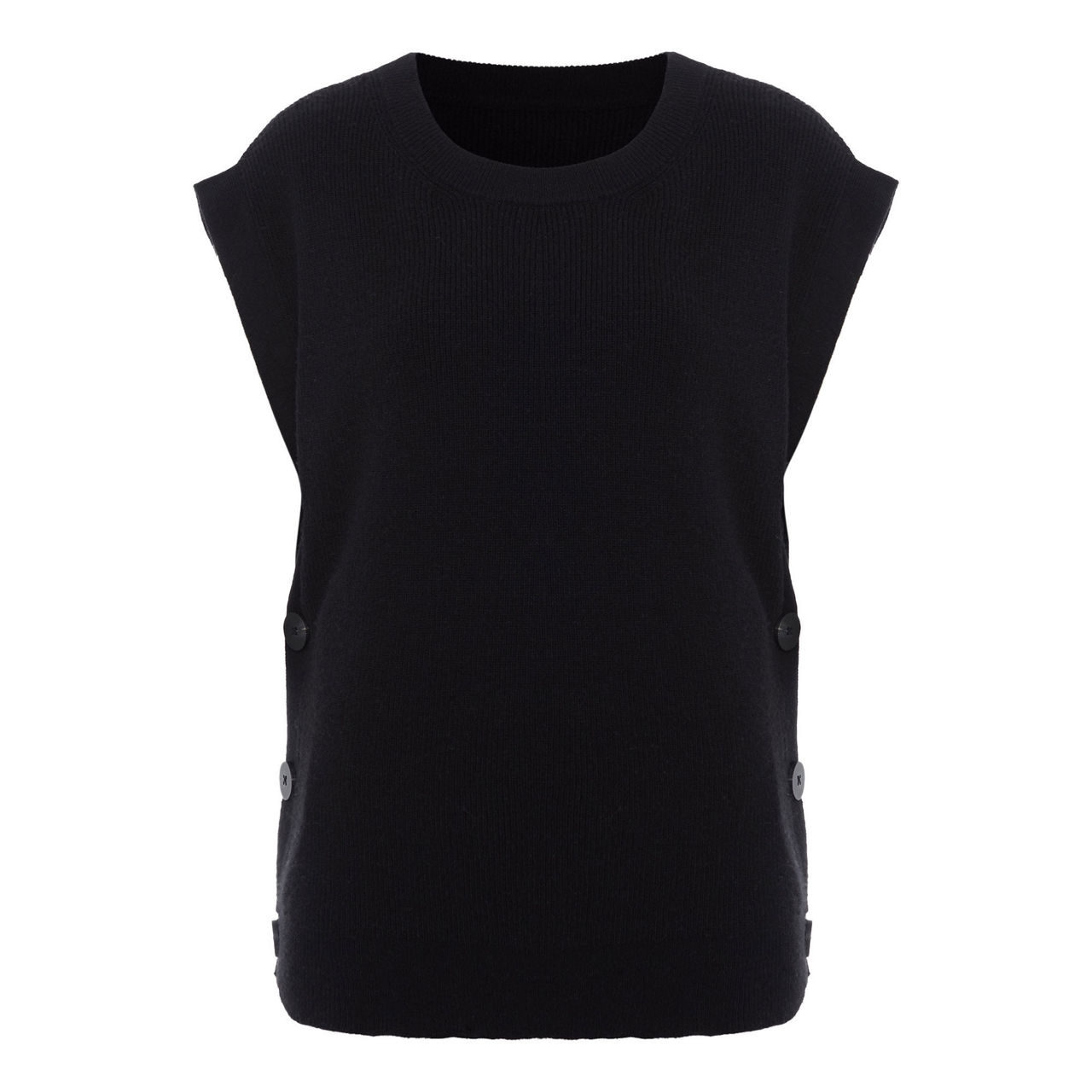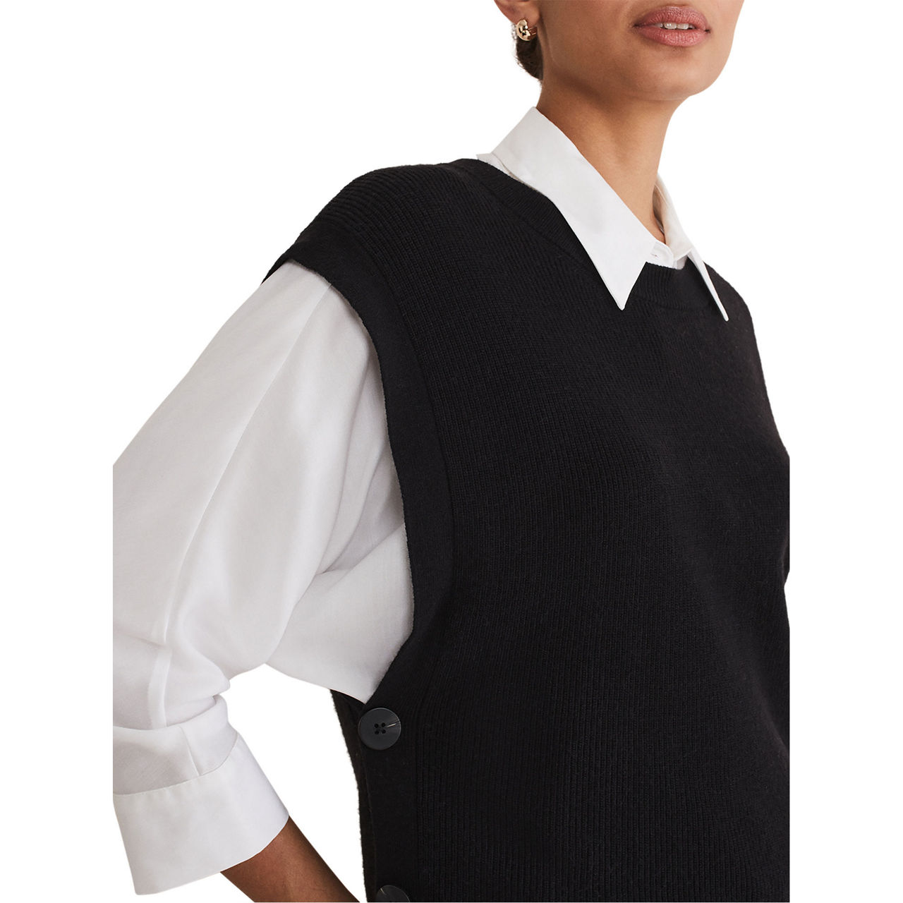 Phase Eight has embraced the must-have trend of this season with this knitted vest. Designed in a versatile black shade with button details, this style can be worn on its own or over tailored shirts.