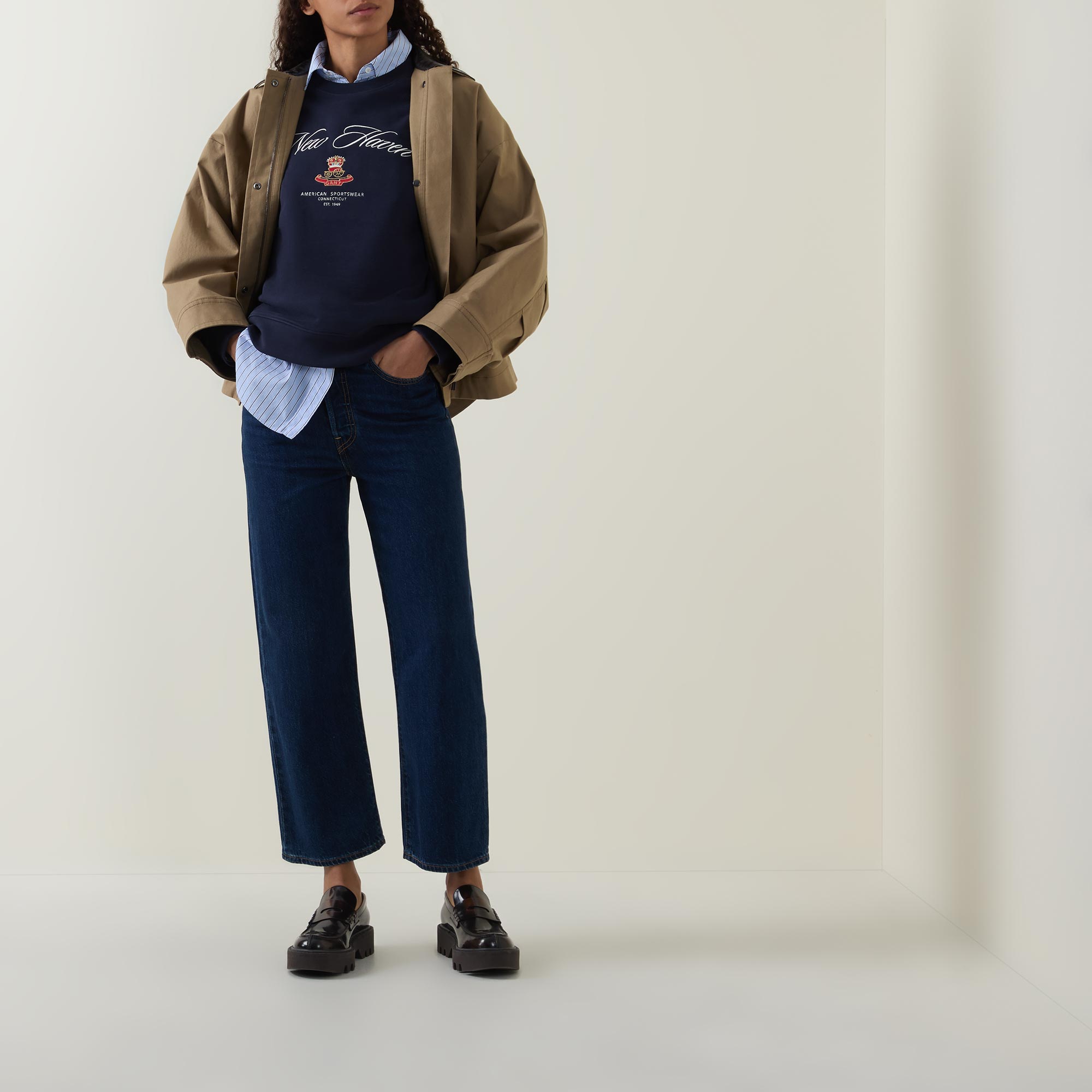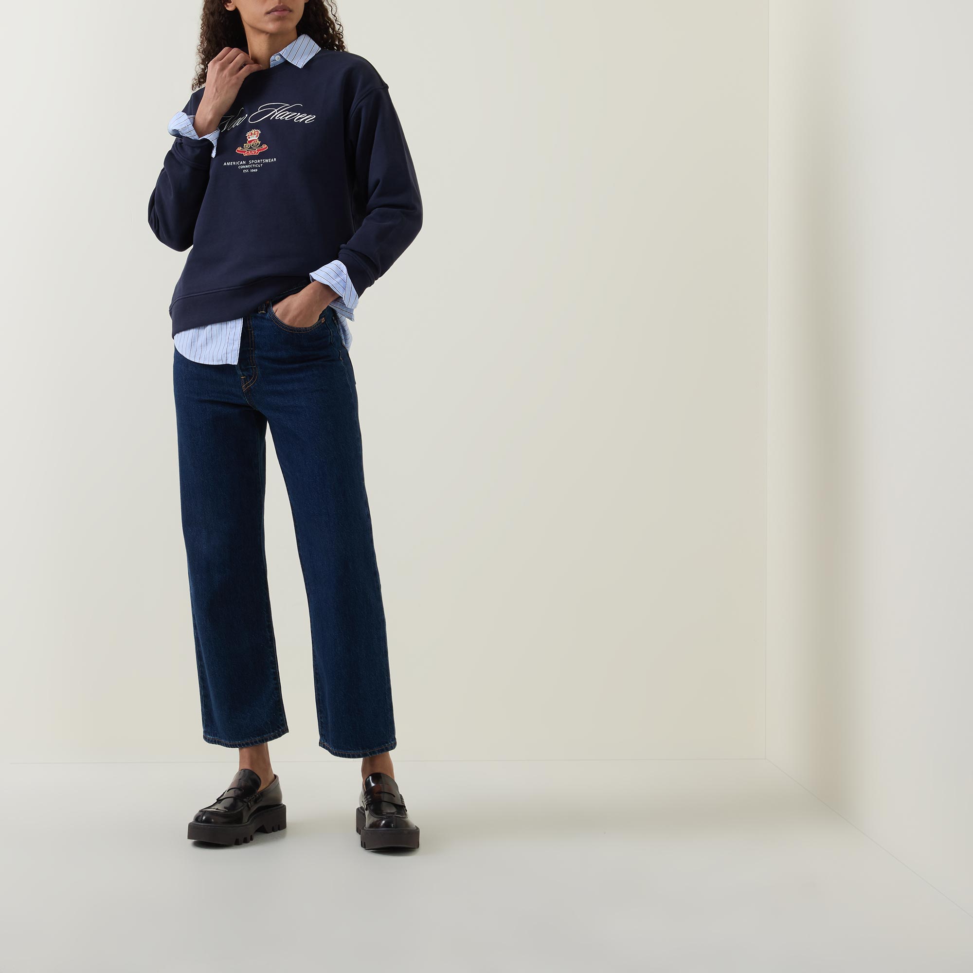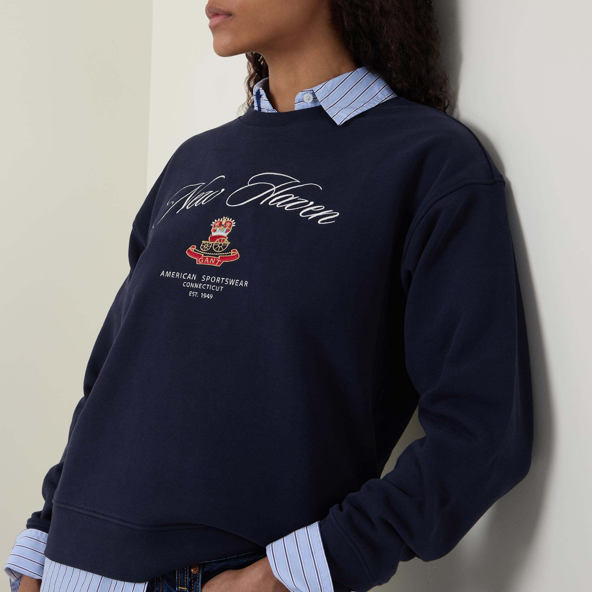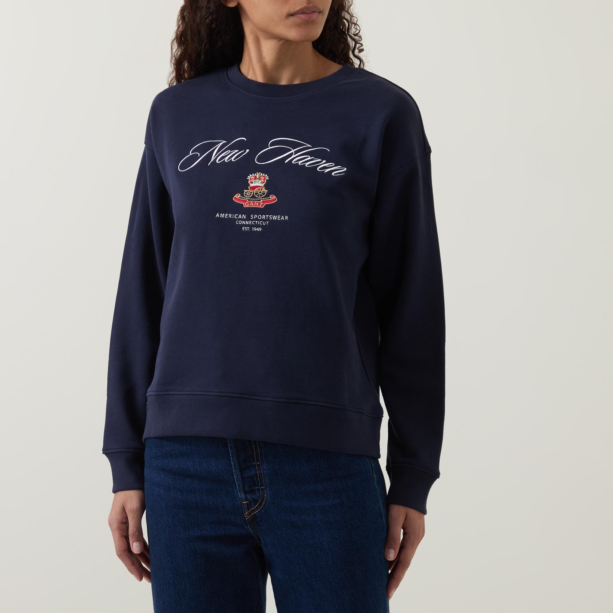 • Crew neckline, long sleeves, dropped shoulders, graphic design across the chest, elasticated hemline, stretch cuffs, pullover style, smooth fabric