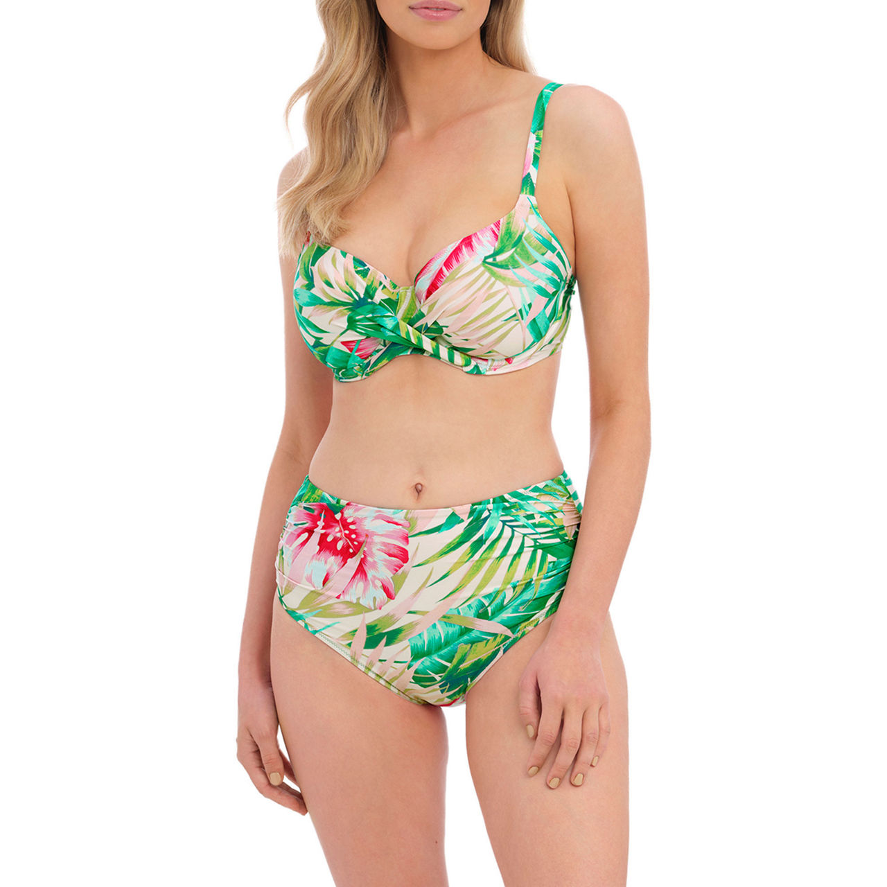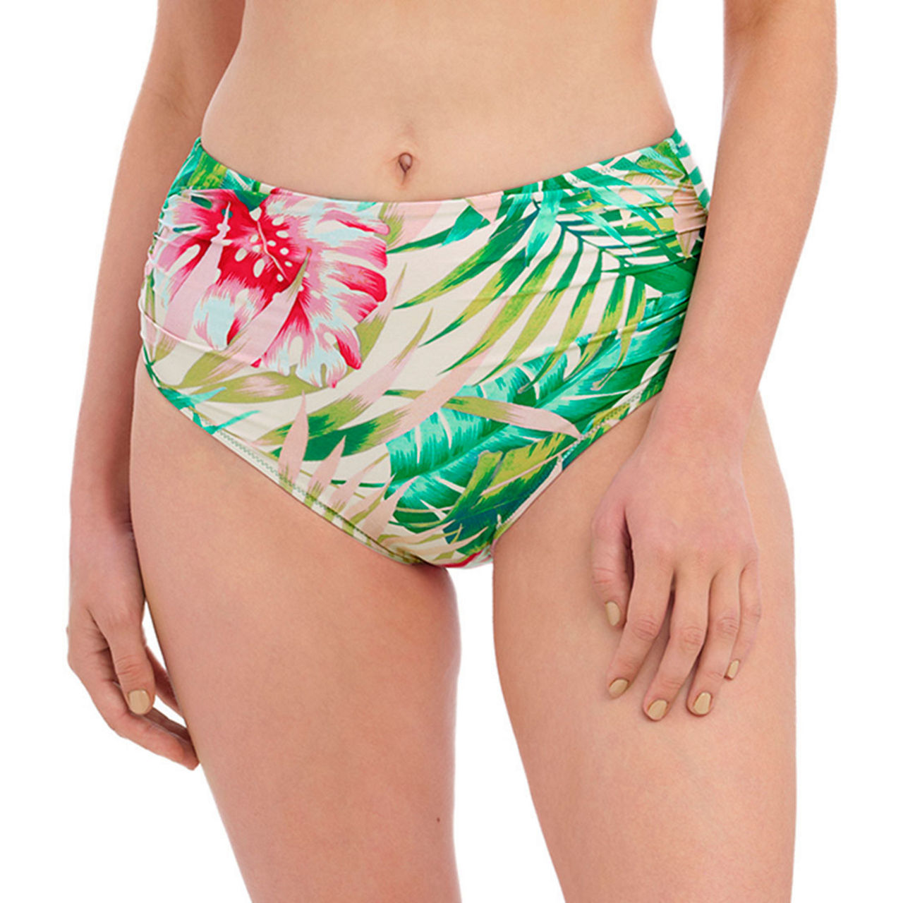 The Langkawi bikini briefs from Fantasie display a vibrant, tropical print, perfect for holidays. Sustainably made from Reco Nylon, they work a classic mid-rise waist with medium coverage for all day comfort and confidence. Team with the coordinating top to complete the set.