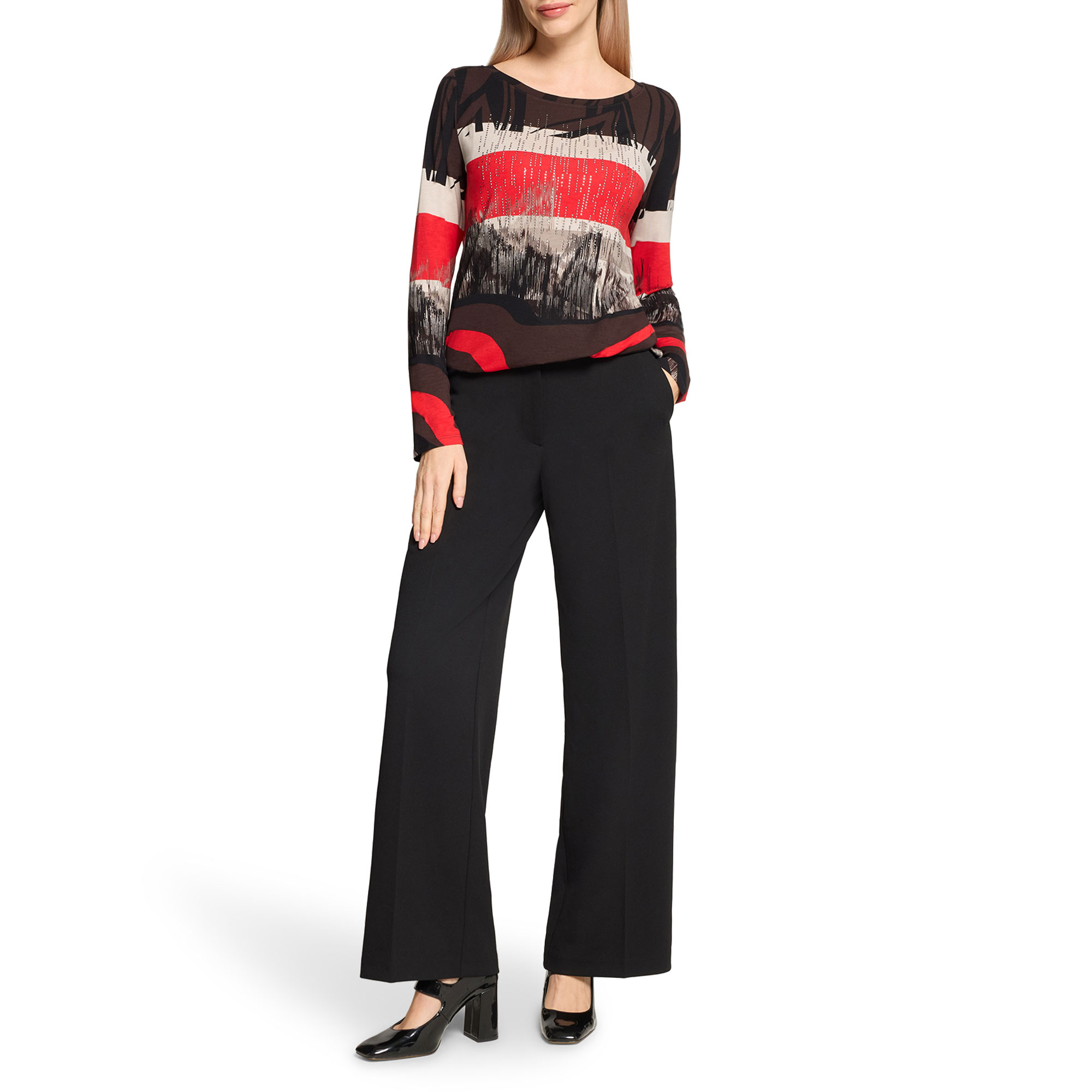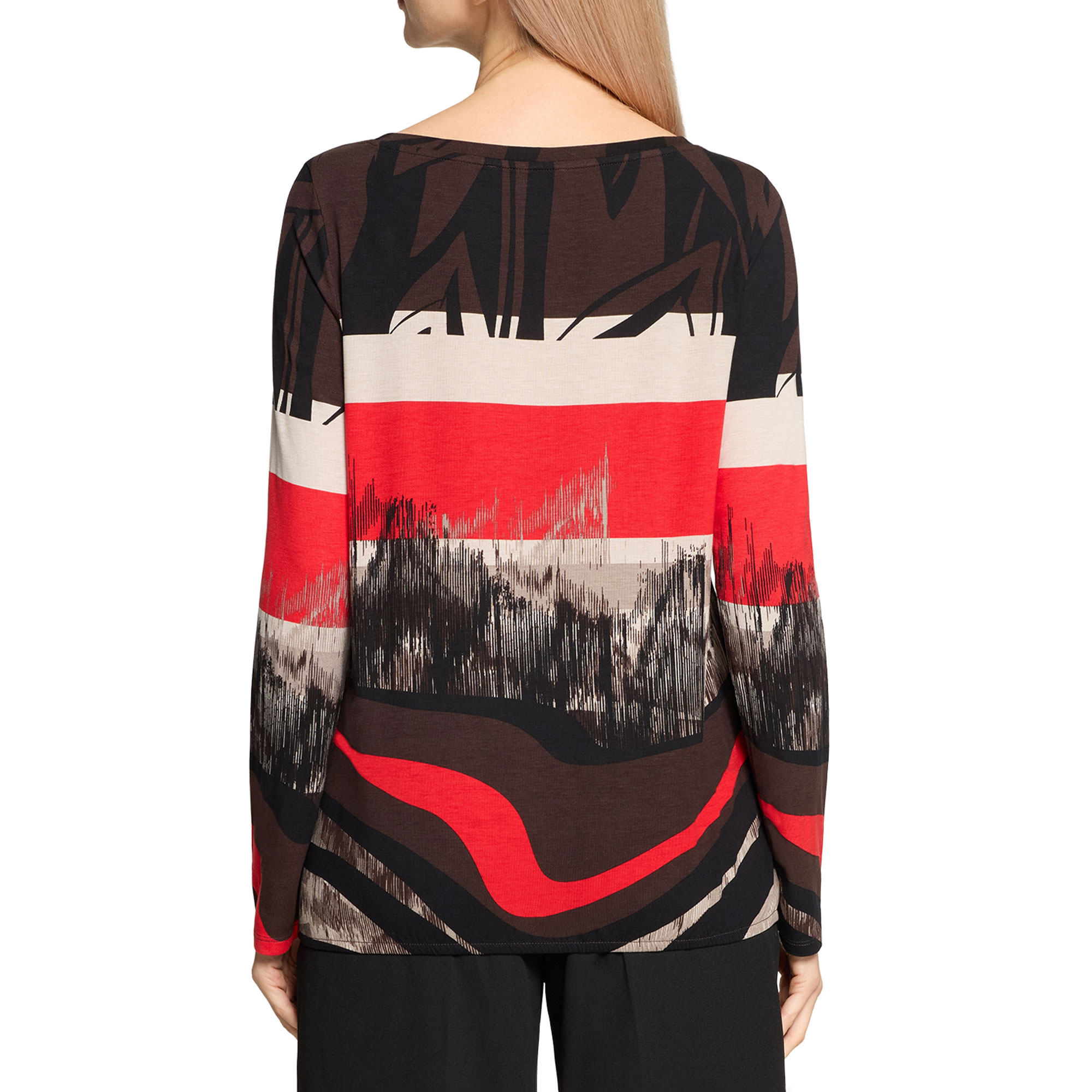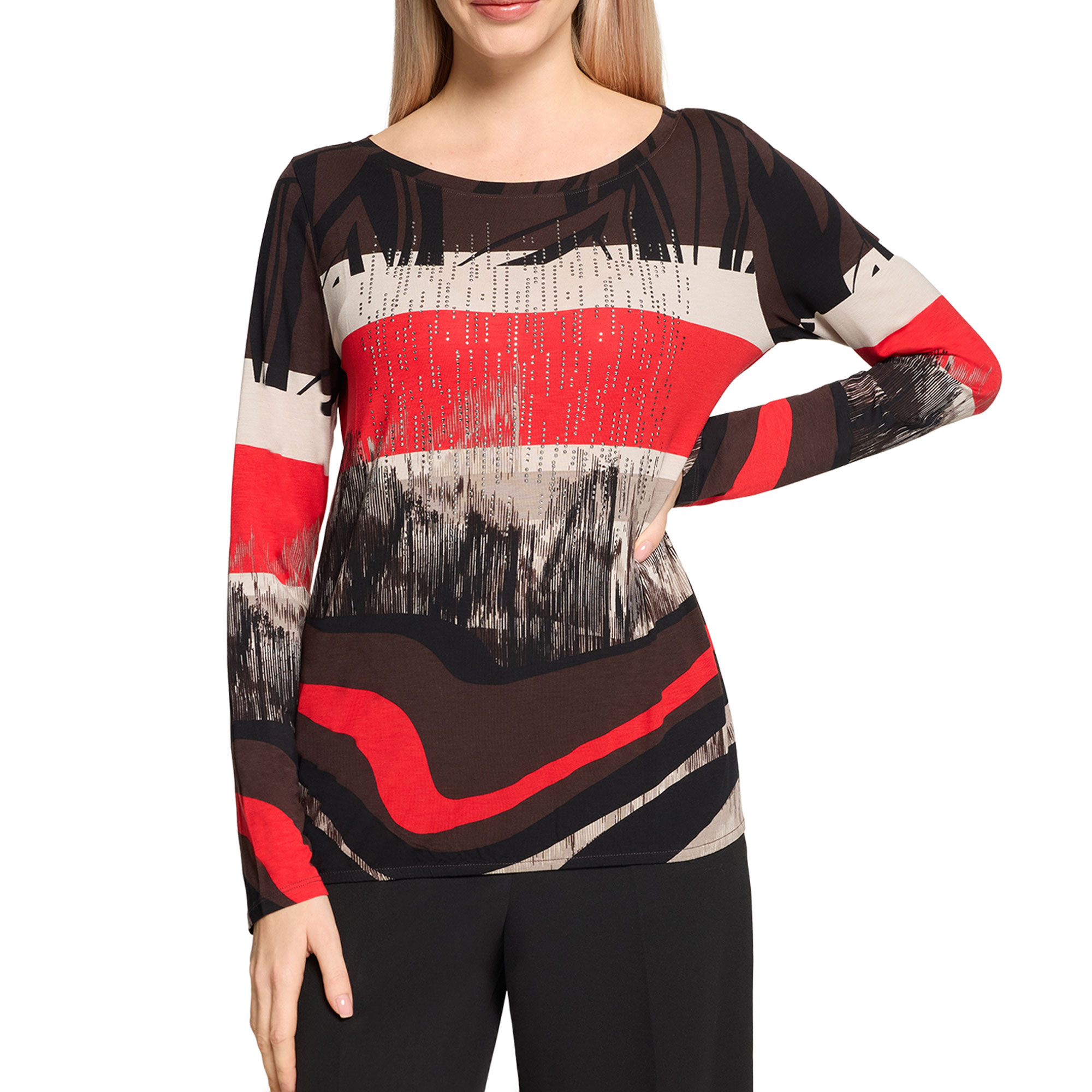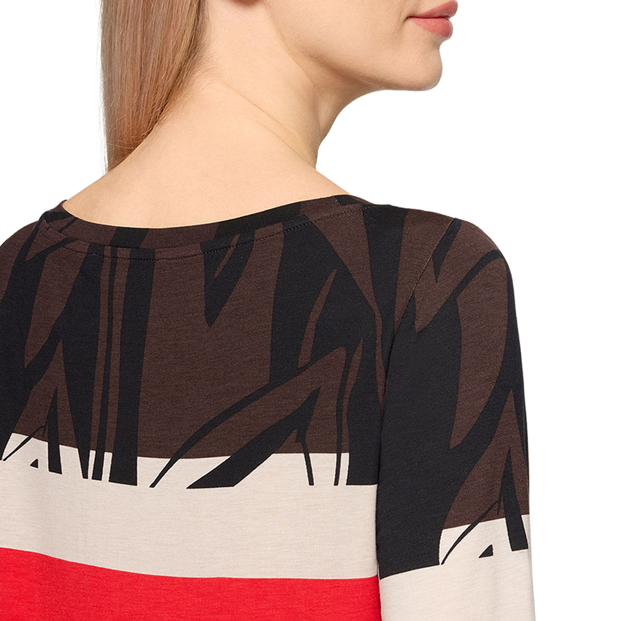 - Long sleeves, bateau neckline, jersey fabric, graphic print