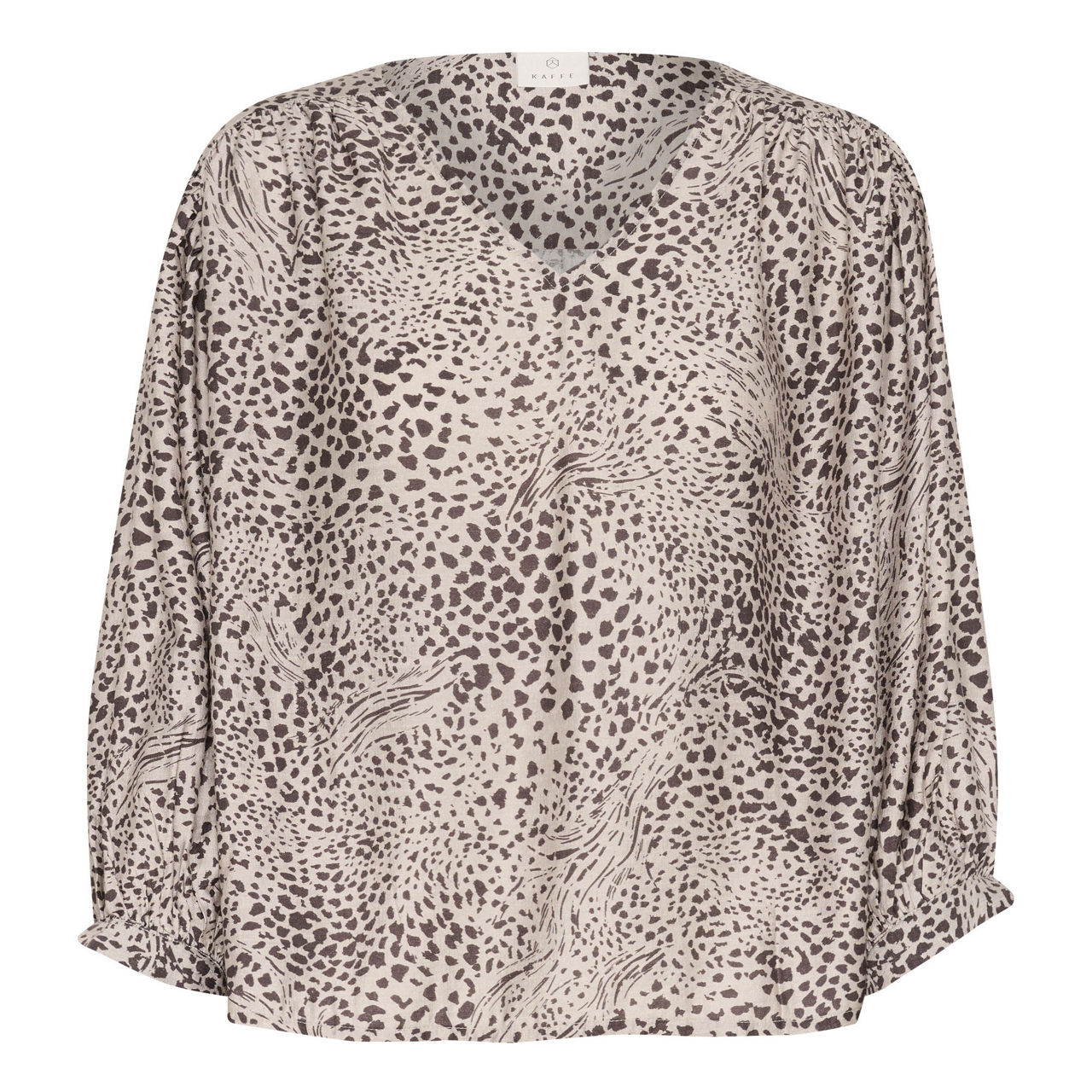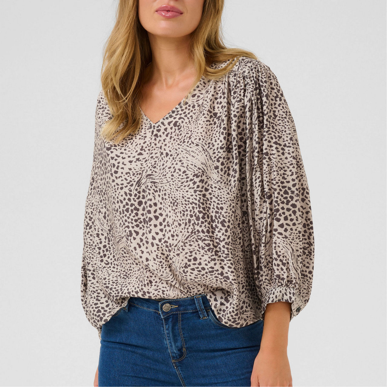 - Abstract leopard print, woven, three-quarter-length sleeves, V-neckline