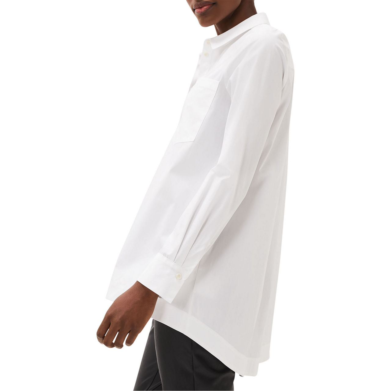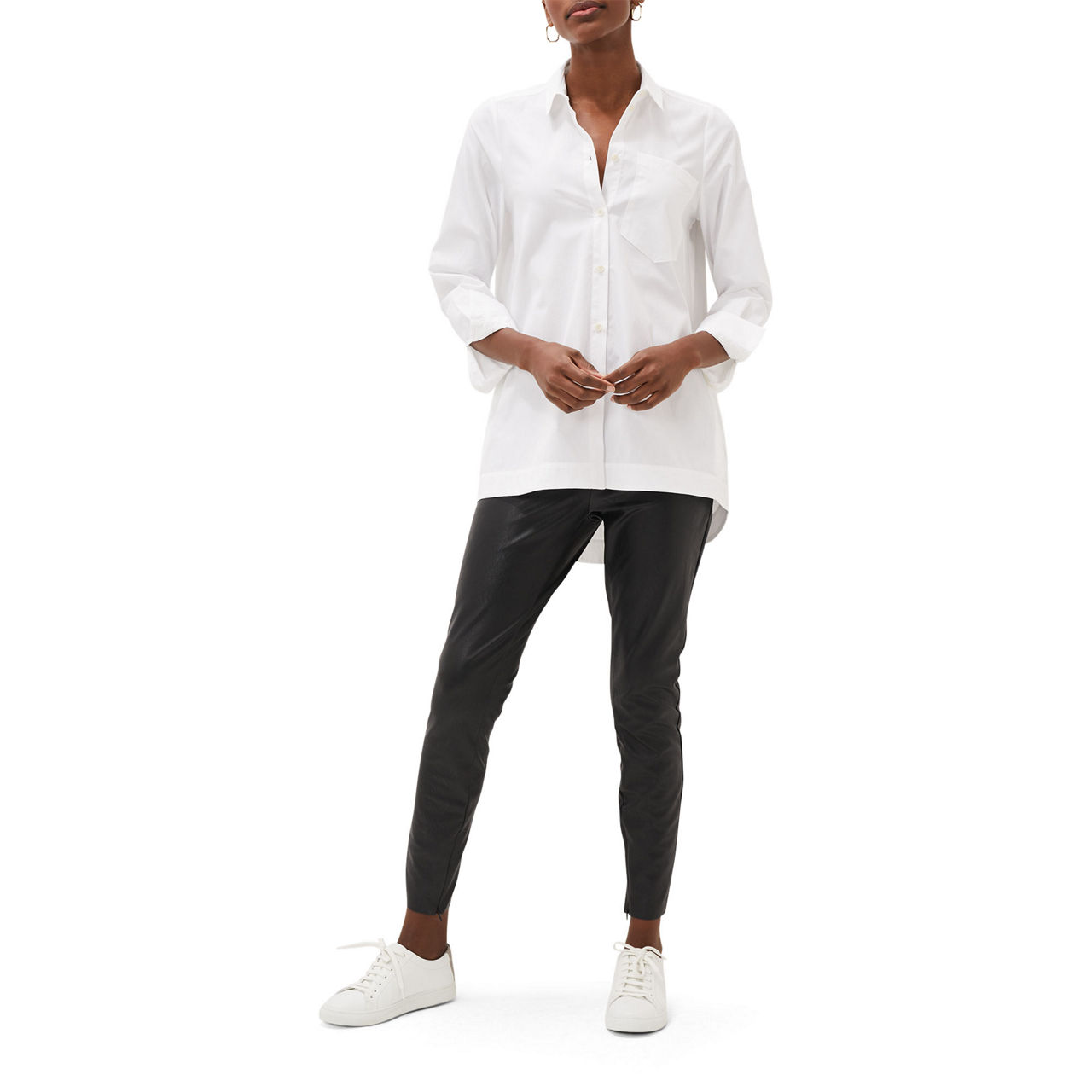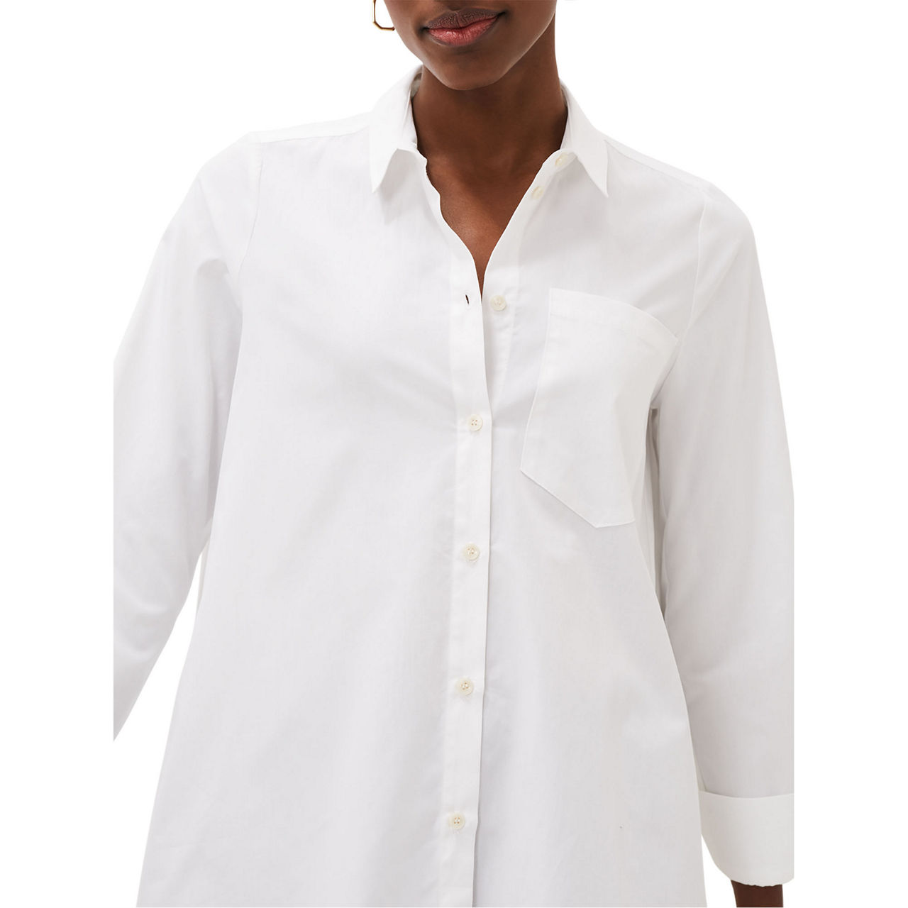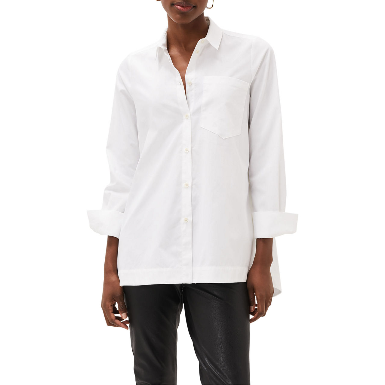 Phase Eight's 100% cotton shirt blends sharp tailored details with a relaxed, longline, off-duty fit. It features a pocket, working buttons and a sharp pointed collar. Wear it with everything from trousers to skirts for an easy work to weekend look.