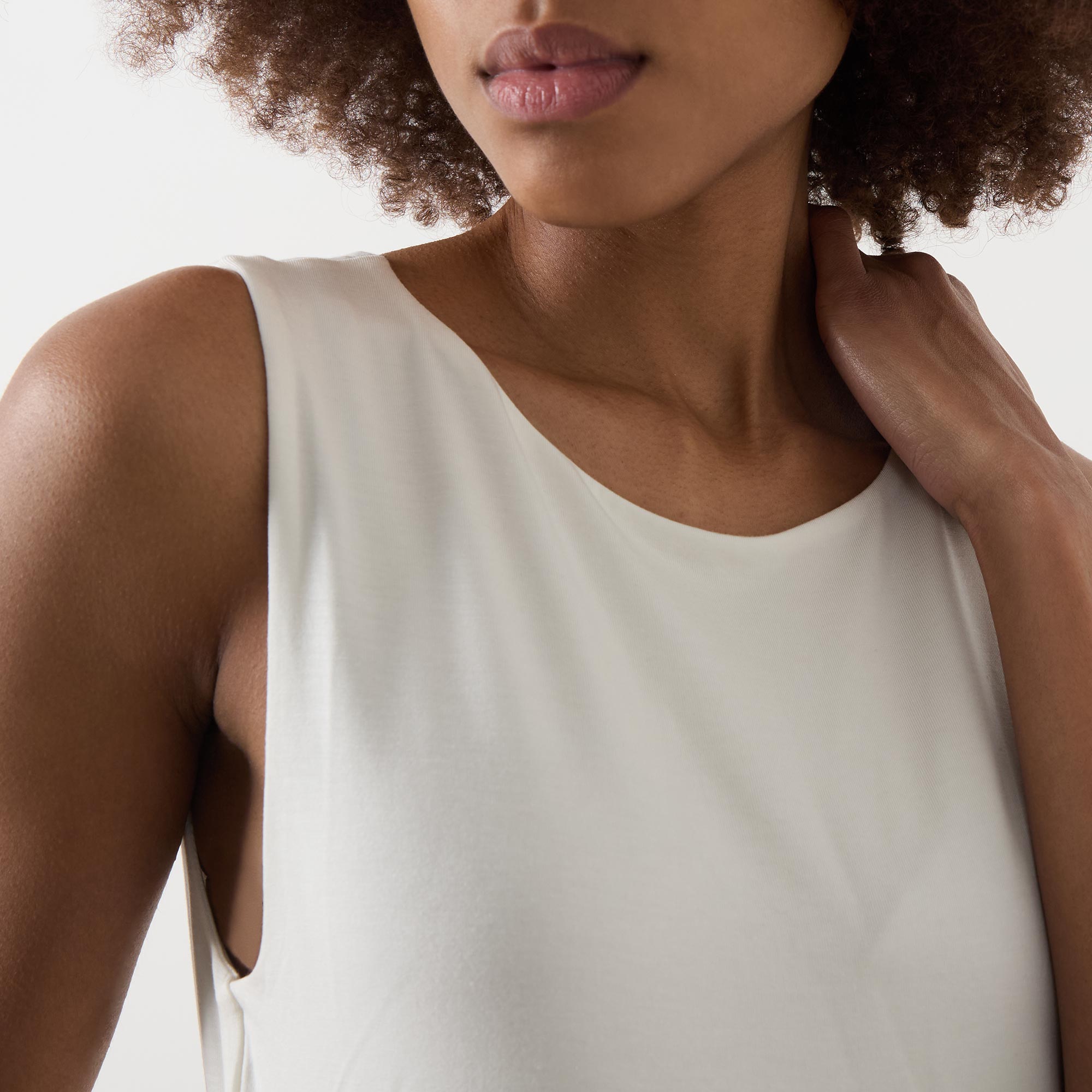 - Round neck, sleeveless design, straight hem, smooth finish, reversible design, wear as a round neck or a high neck