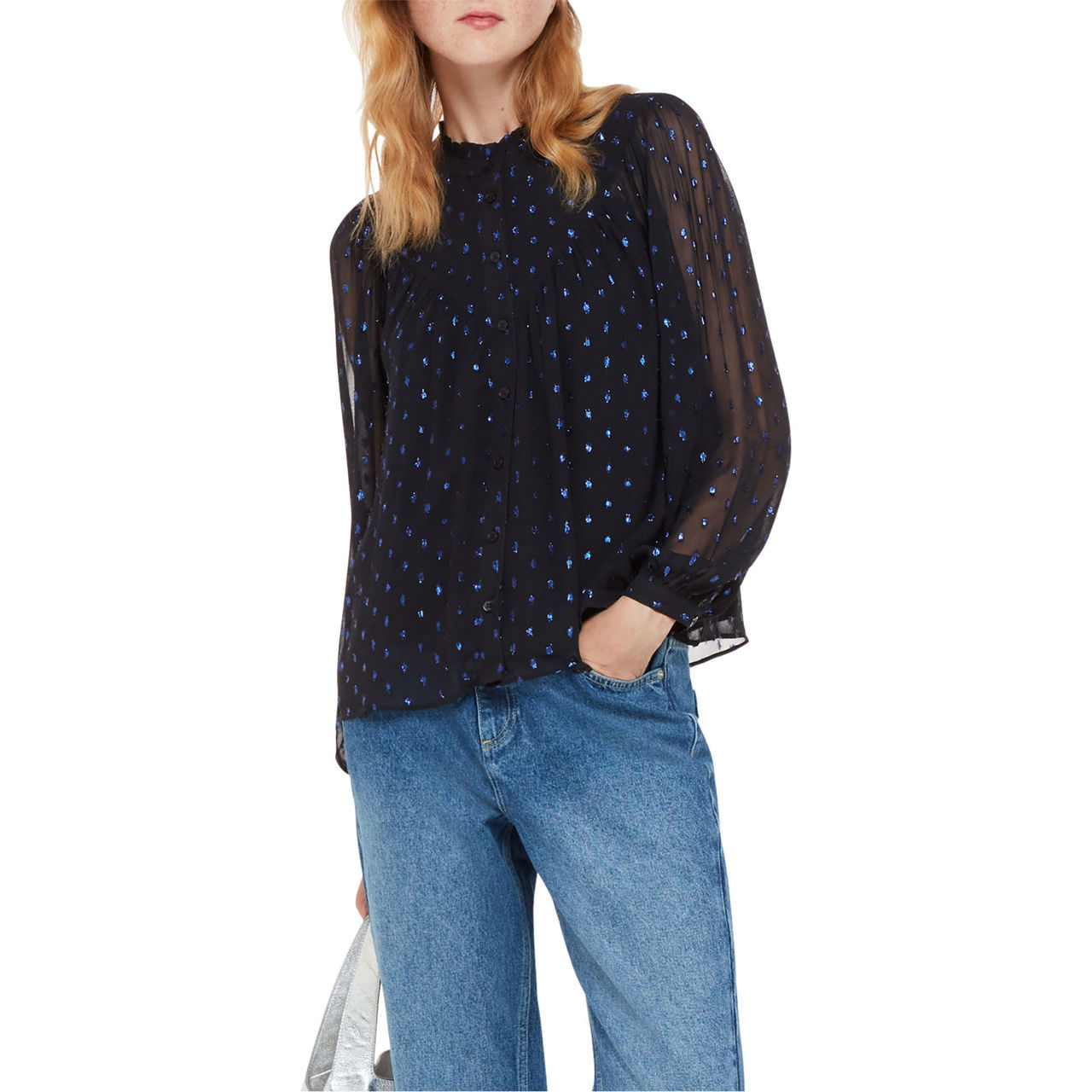 WHISTLES Mia Metallic Dobby Blouse